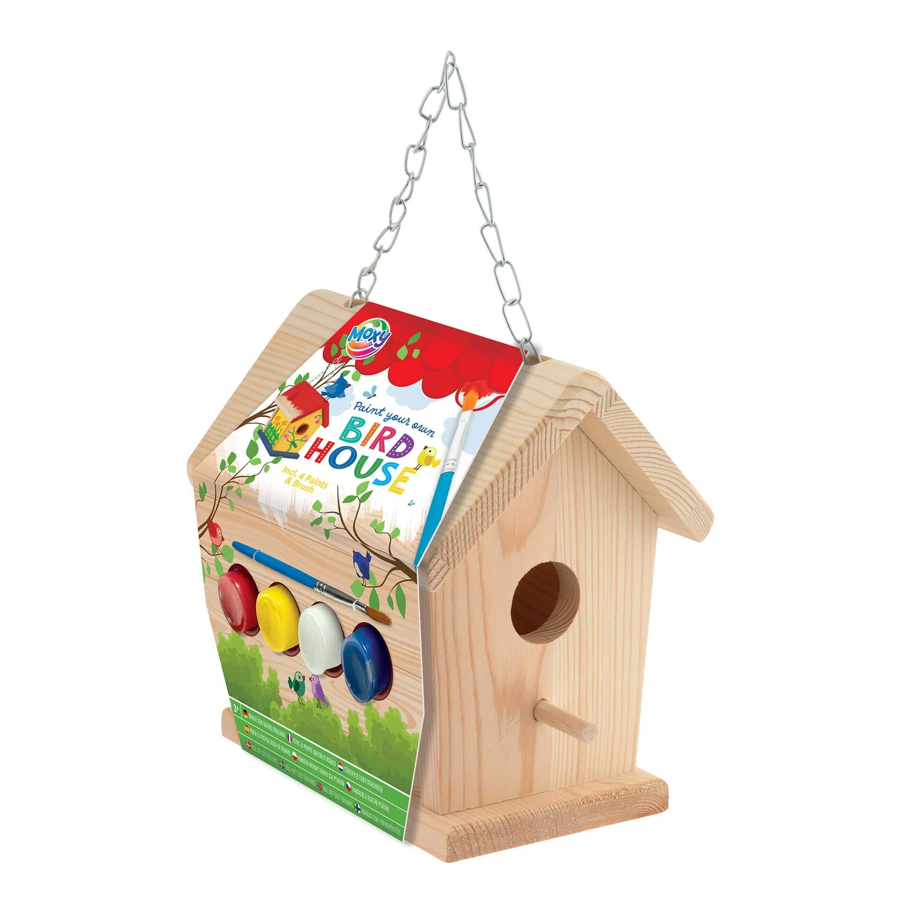 Moxy Къщичка за птици, мини, дървена, с включена четка и 4 бои