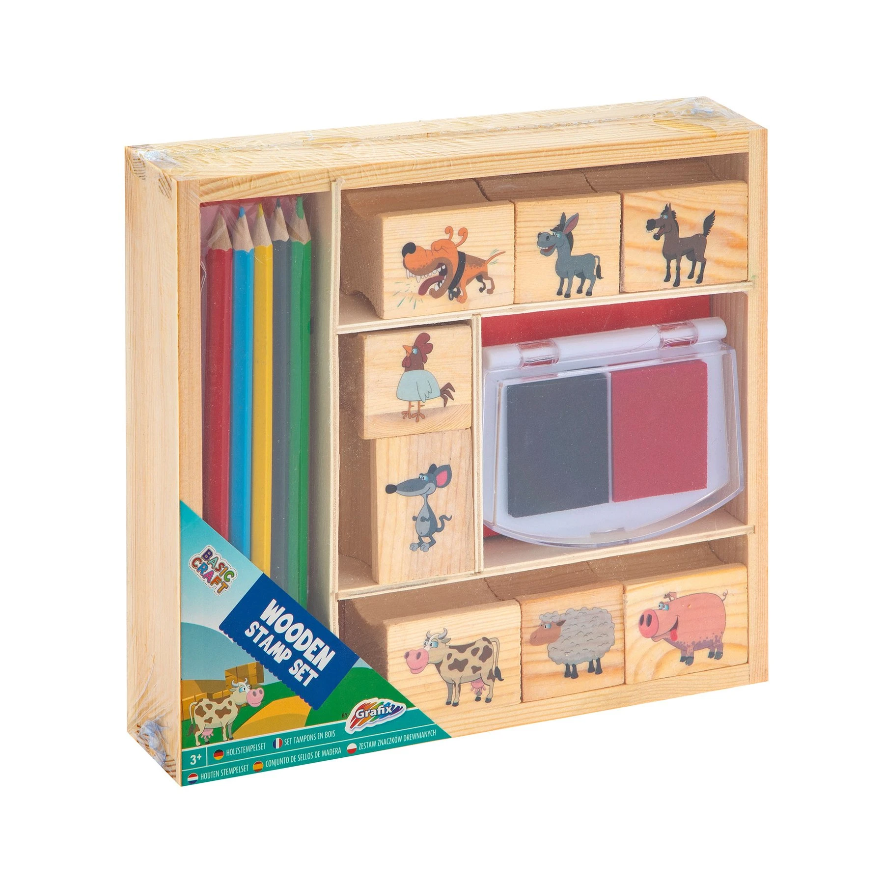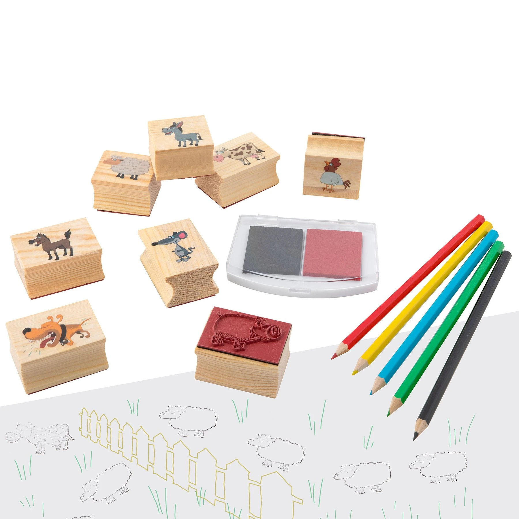 Moxy Комплект дървени печати и цветни моливи, в кутия, сини