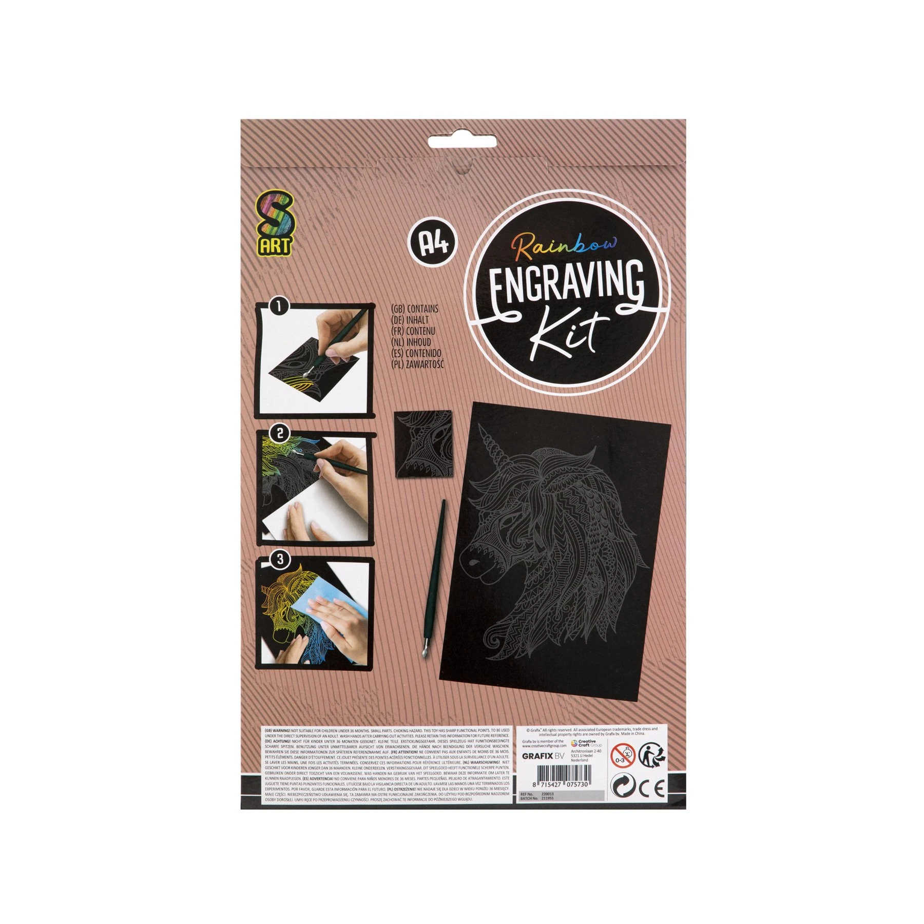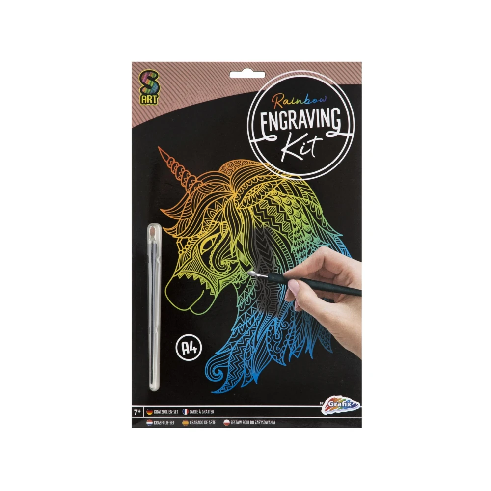 Създайте приказни шедьоври на черен фон с този комплект за издраскване "Еднорог" в невероятни цветове!