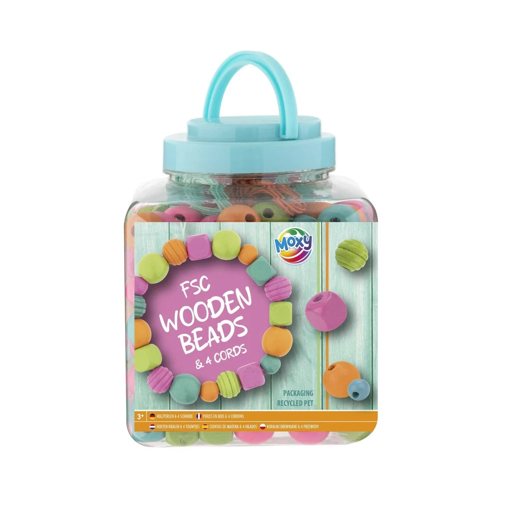 Moxy Мъниста, дървени, 375 g, в кофа, синя