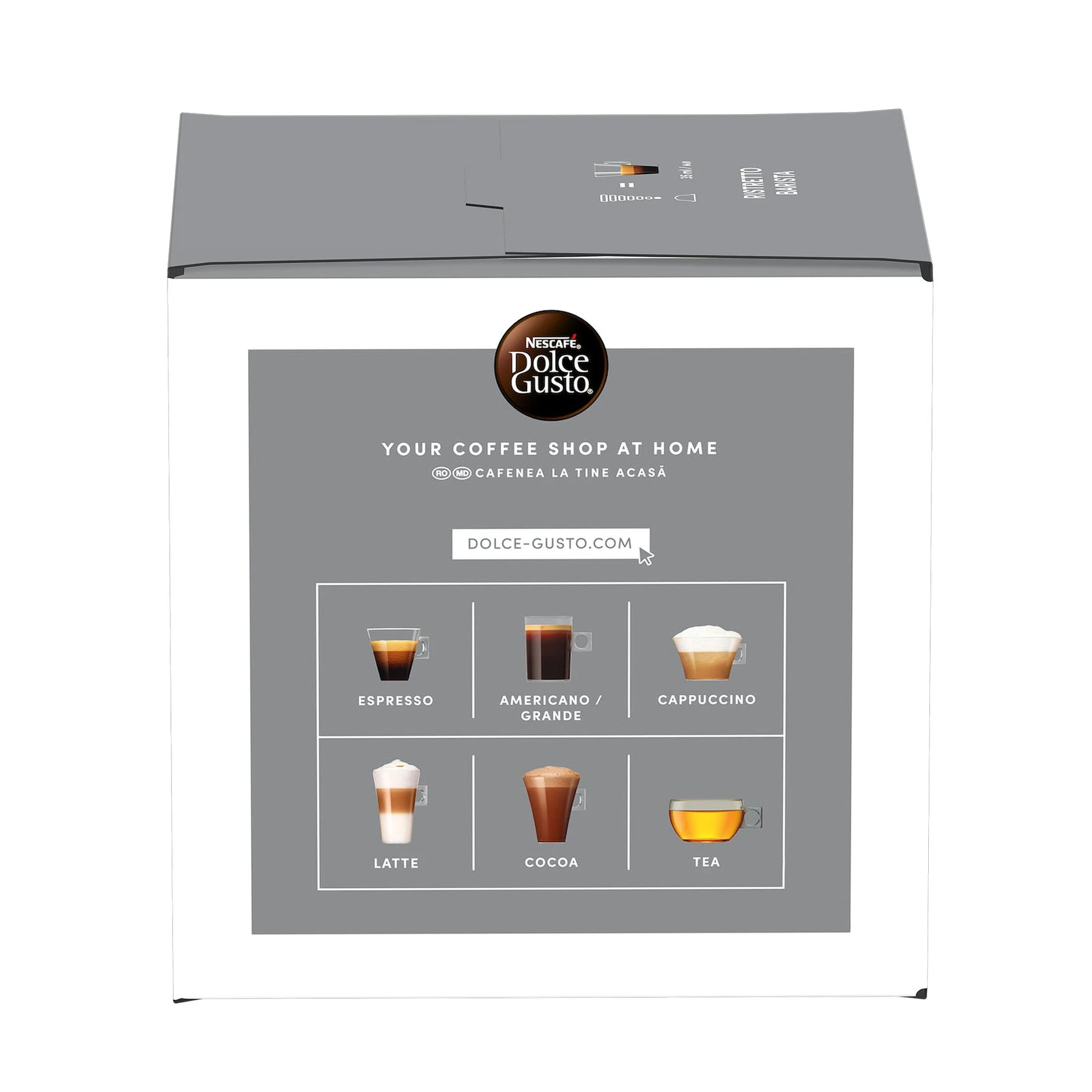 Открий NESCAFE® Dolce Gusto Ristretto Barista - късо кафе, ристрето (35 ml), с плътно тяло, гъст каймак и долавящи се нотки на какао, амарето, щипка черен касис и боровинка.