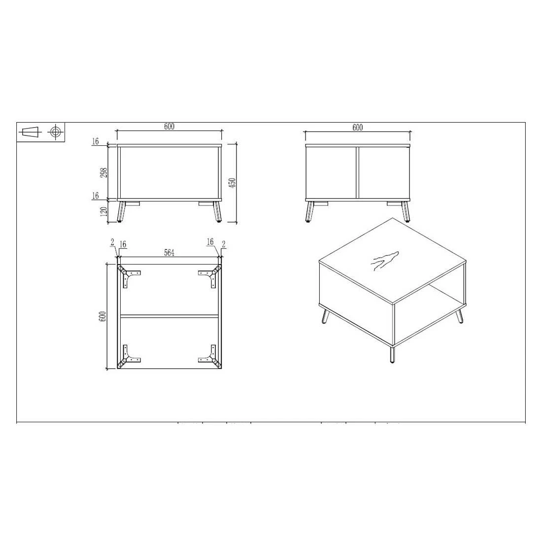 Ниска маса RFG Paris, 600 х 600 х 450 mm, квадратен плот, ПДЧ 25 mm, орех и светлосиво