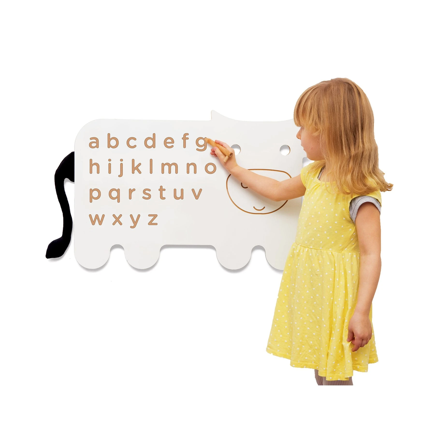 Дъската служи за двигателни упражнения и обучение за писане на главни и малки букви.
