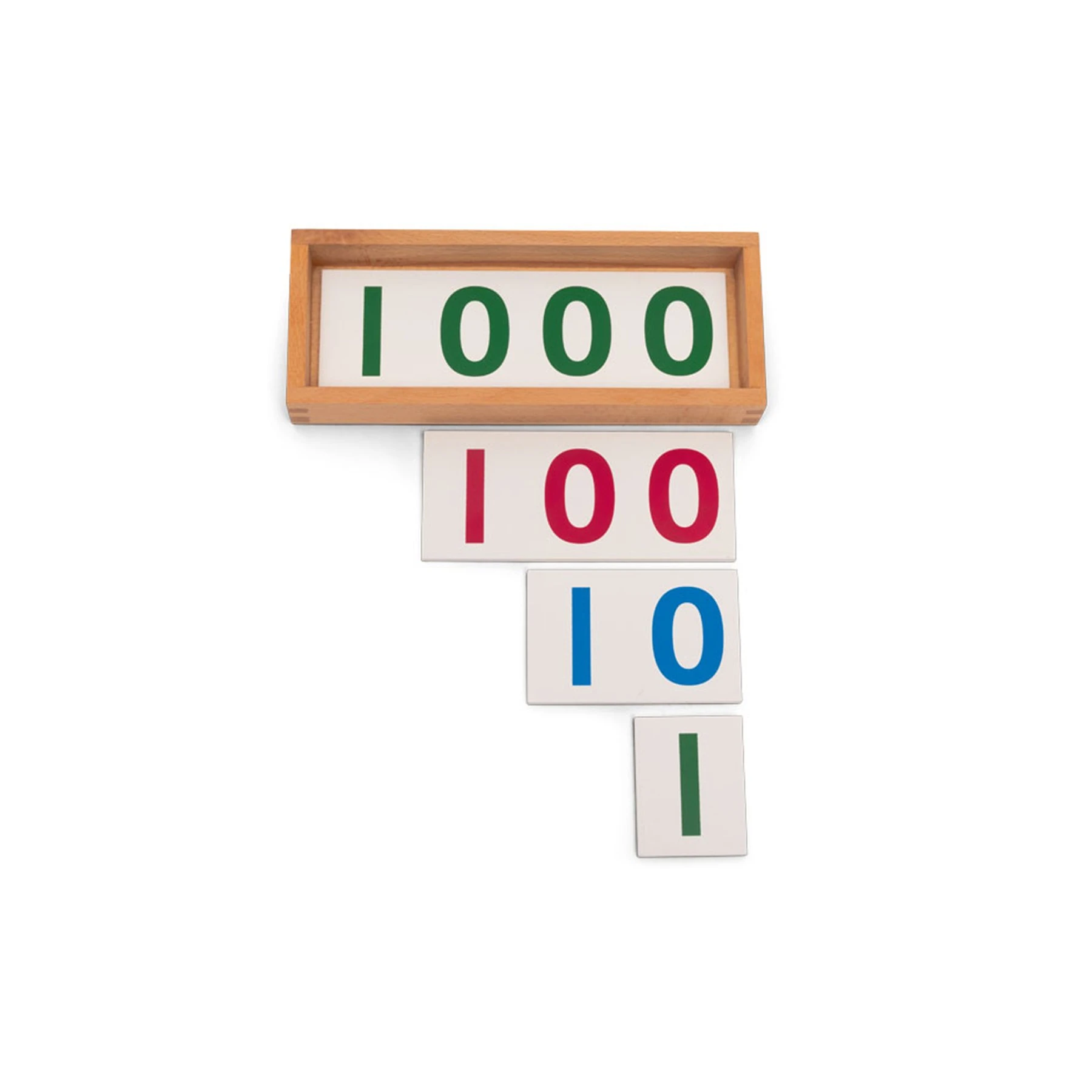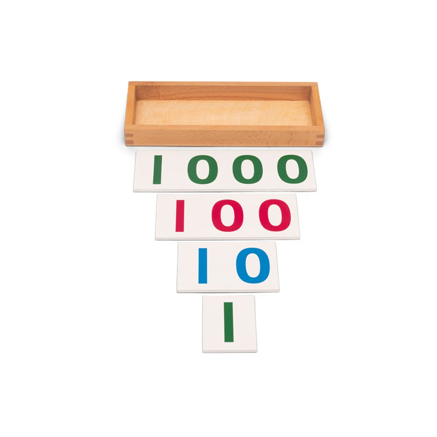 Под формата на дървени плочи, картите изобразяват цифри в следните цветове: зелено - единици, синьо - десетки, червено - стотици и зелено - хиляди.