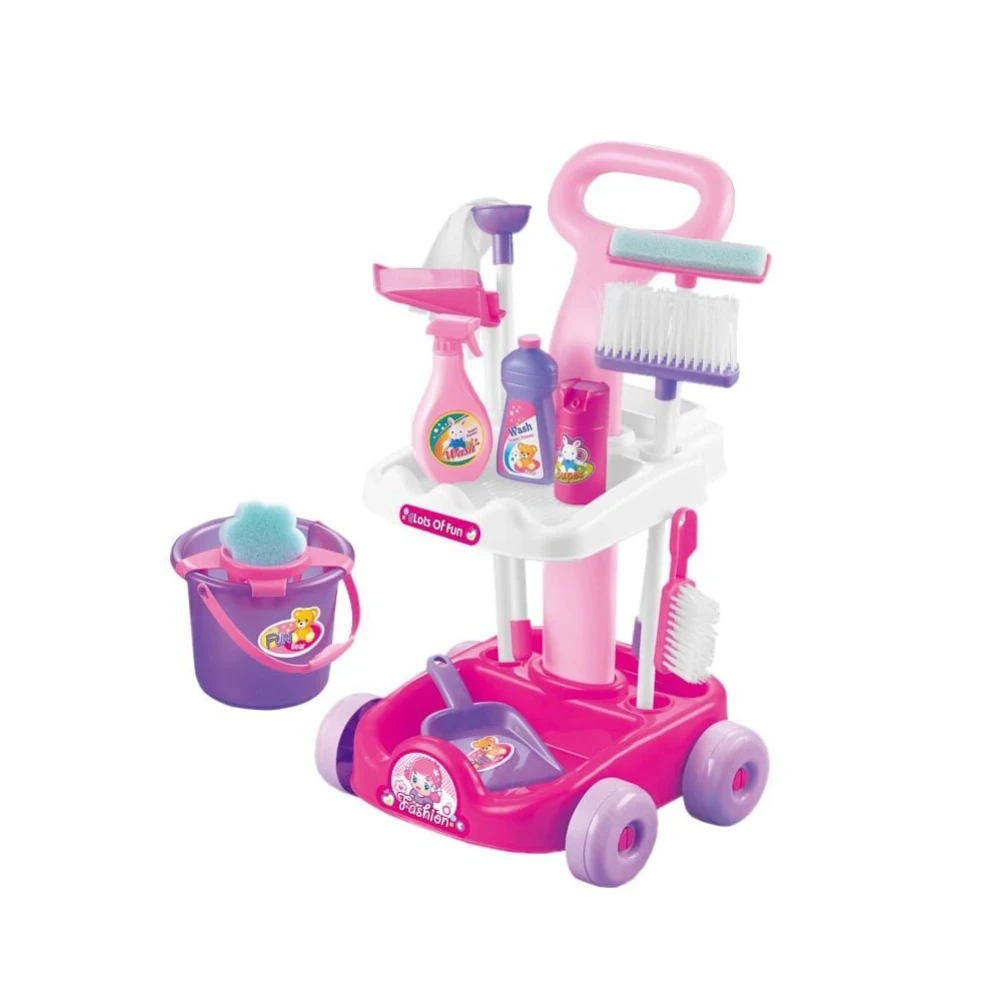 Комплектът с принадлежности за почистване е количка с всички необходими приспособления за малките деца.