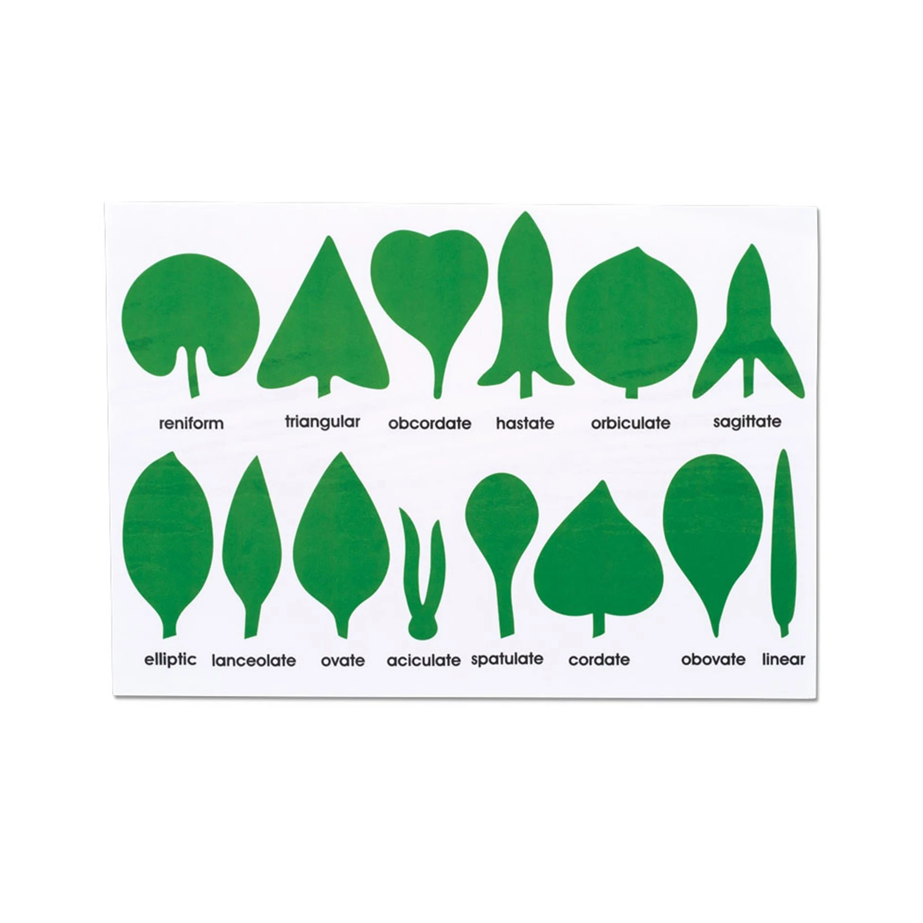 Съдържа 14 рисунки на листа с описания и форми: бъбрековидна, триъгълна, облистена, копиевидна, кръгла, стреловидна, елипсовидни, ланцетна, яйцевидна, шиловидни, сърцевидна, обратнояйцевидна, яйцевидна, и ензимна.