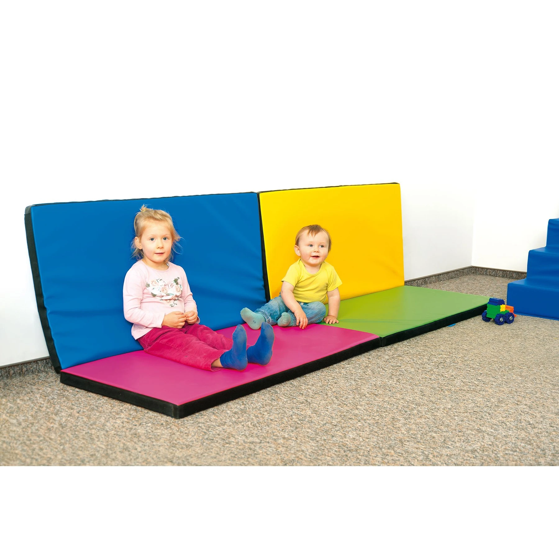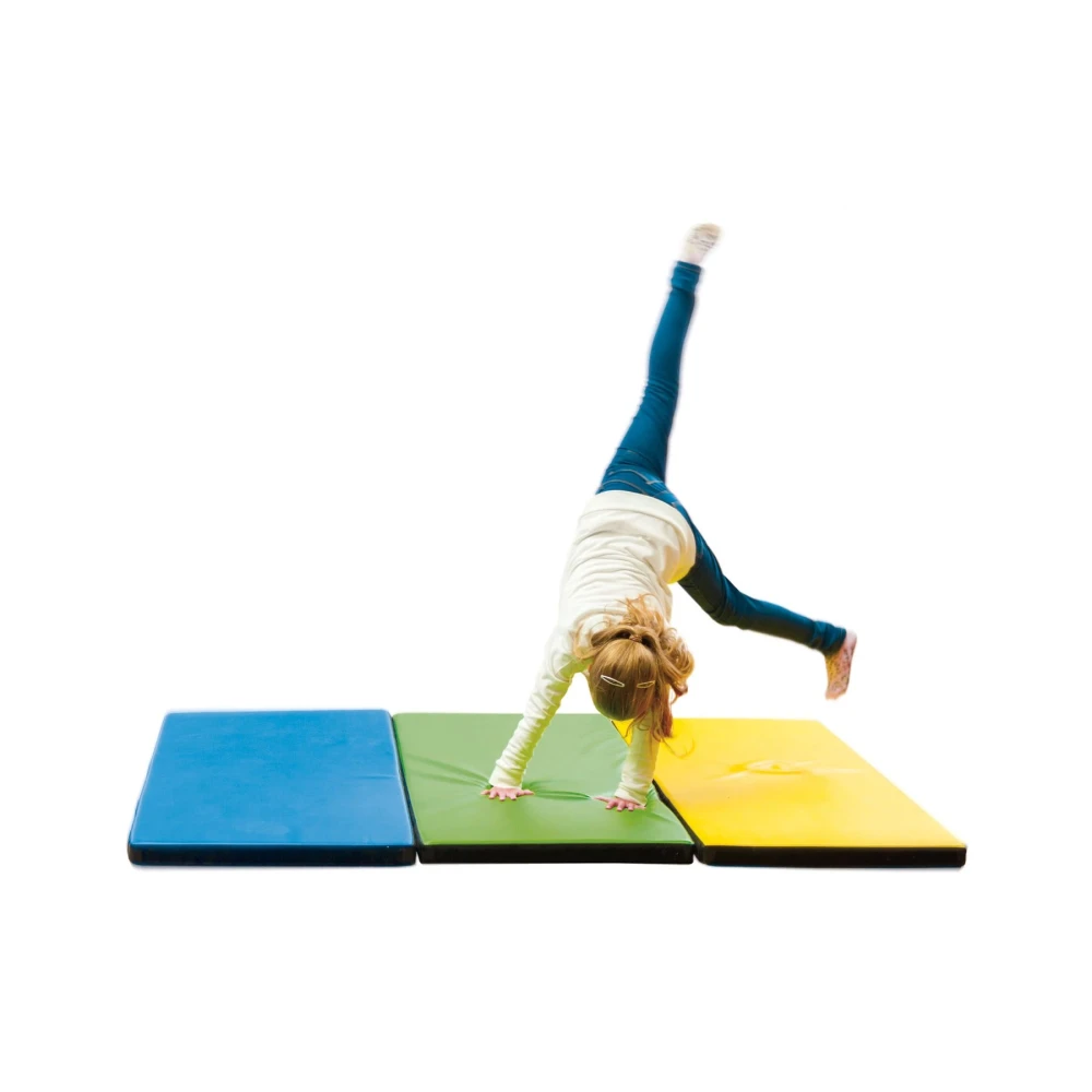 Голям матрак, който осигурява безопасна зона за упражнения.