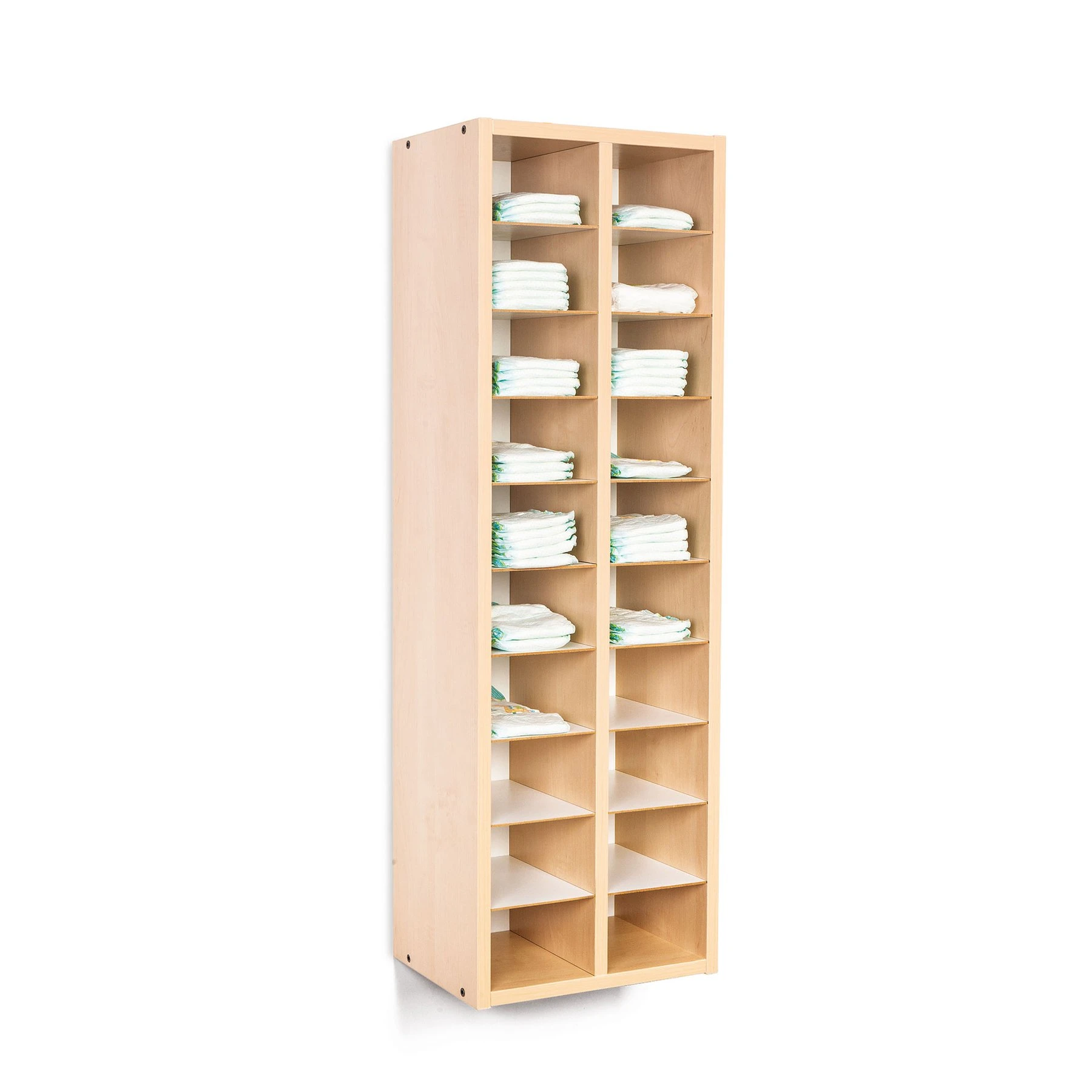 Тесен шкаф за пелени с 20 отделения.