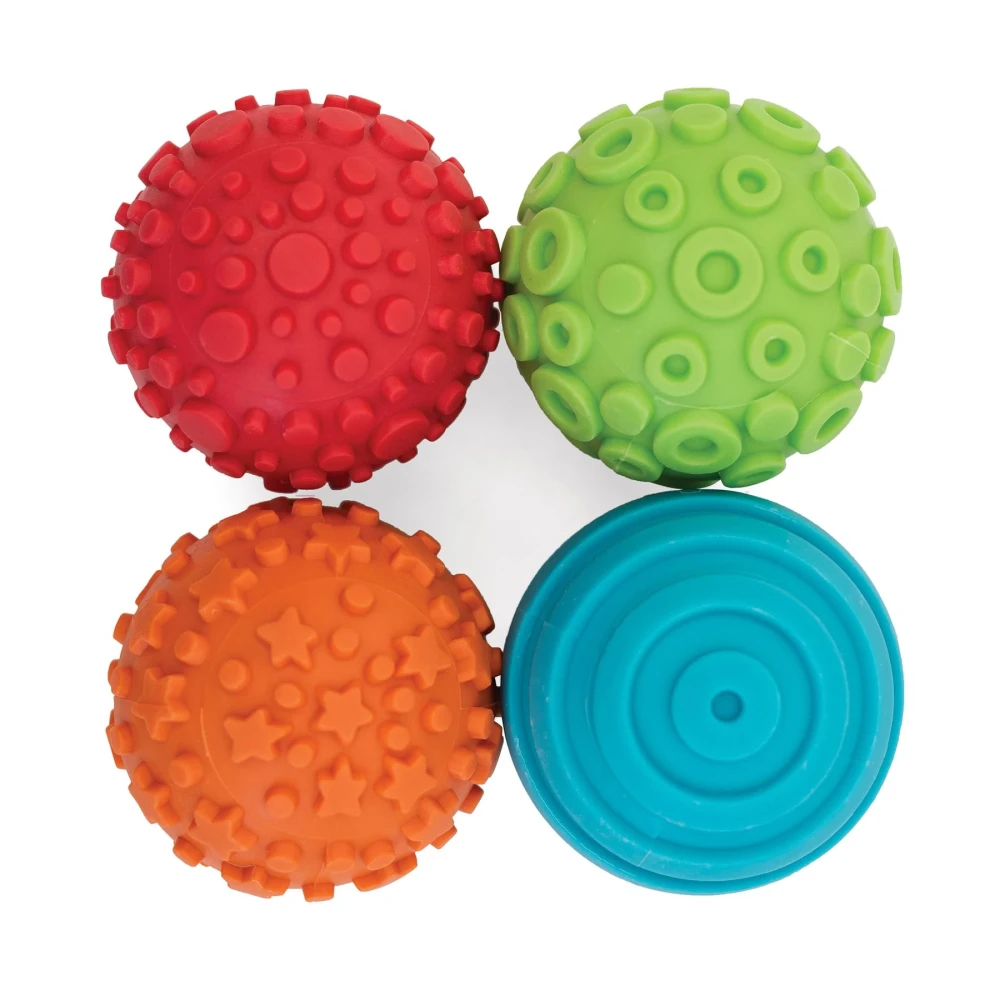 Големи гумени топки с различни текстури за отпечатване на шарки върху глина, пластилин или боя.
