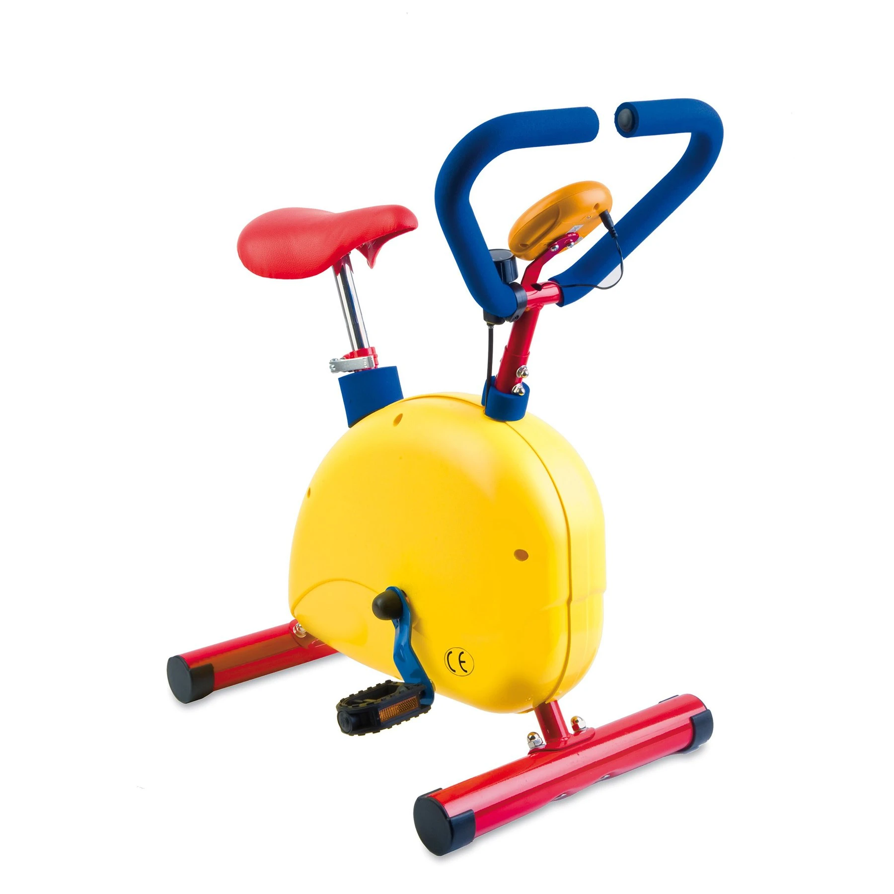 Детският велоергометър разполага със стабилна метална конструкция, покритие от пластмаса и мека пяна, което го прави безопасен за употреба от децата. Велоергометърът разполага с електронен дисплей, който показва изминато разстояние, време и изразходвана енергия. Спортувайки редовно на велоергометъра, децата ще укрепят своите мускули, развият координацията си и ще поддържат своята правилна поза. Идеален е за вашия мини фитнес.
