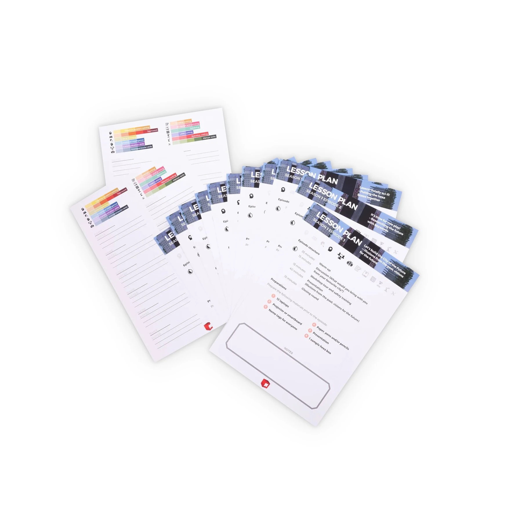 -Изчерпателно ръководство за учителя с педагогическа информация, протичане на курса, времетраене и алтернативи; -16 подробни плана за уроци; -Примерни обекти и предмети за вдъхновение на учителите + за сглобяване преди уроците; -Презентации в класната стая; -Инструментариум за оценяване; -Флаш карти, настолни игри; -Образци за проектиране и кодиране; -Учебни материали за провеждане на STEM дейности в 32 учебни часа; -Ръководство за запояване; -Работна тетрадка за Micro:bit; -Всички цифрови файлове са достъпни в онлайн платформата; -Безплатен стартов комплект с консумативи за 12 ученици.
