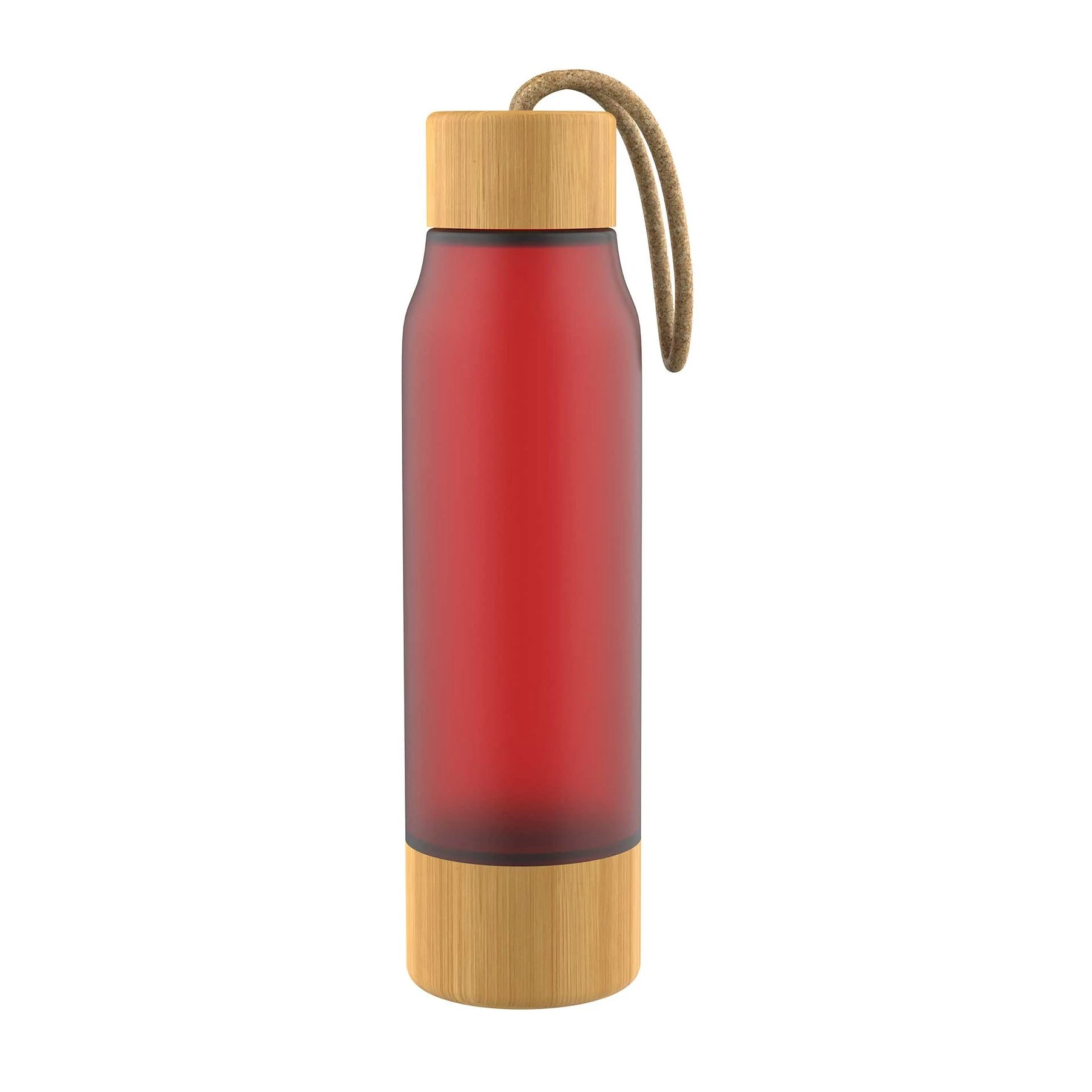 Червена бутилка, изработена от боросиликатно стъкло.
