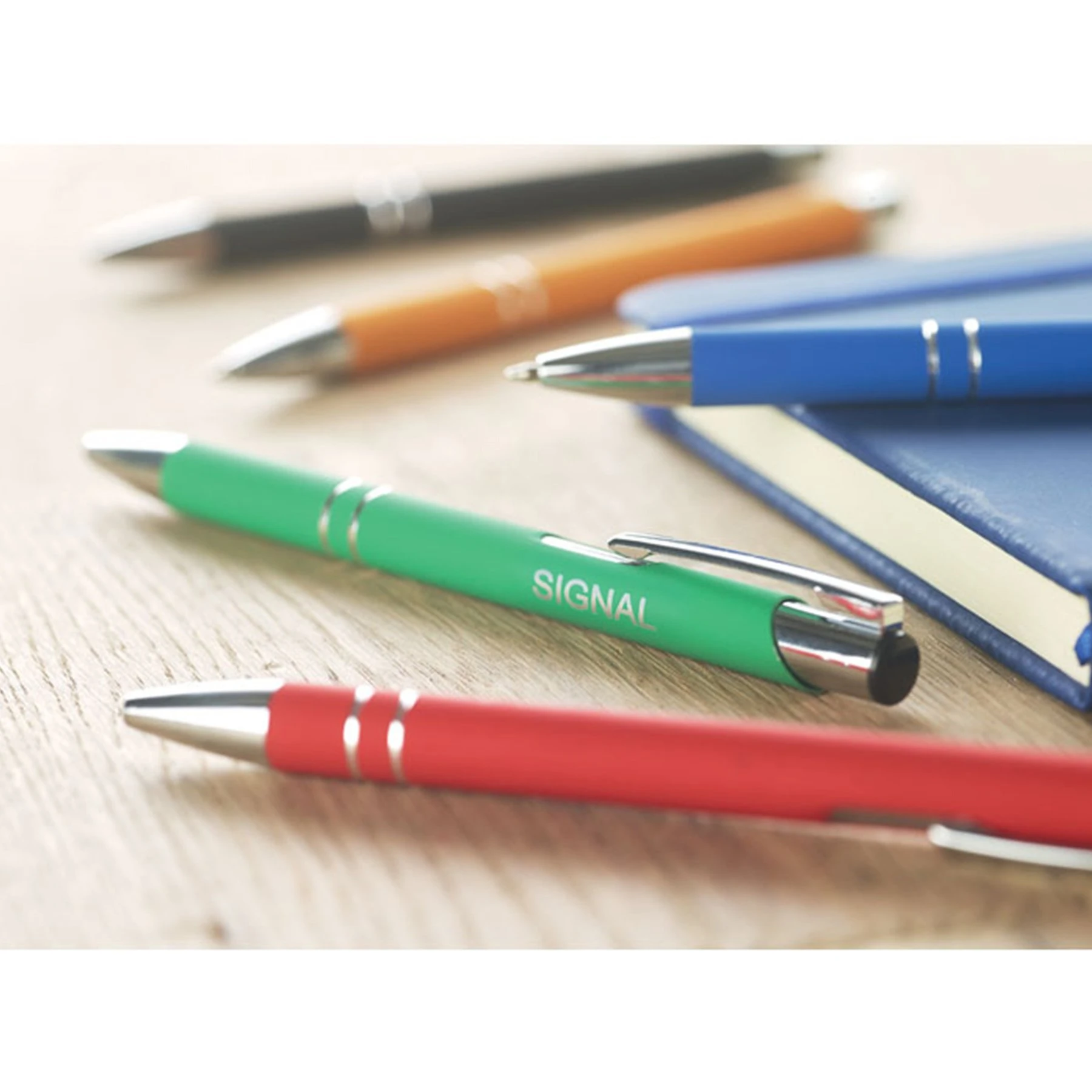 Aвтоматична химикалка с алуминиево тяло.