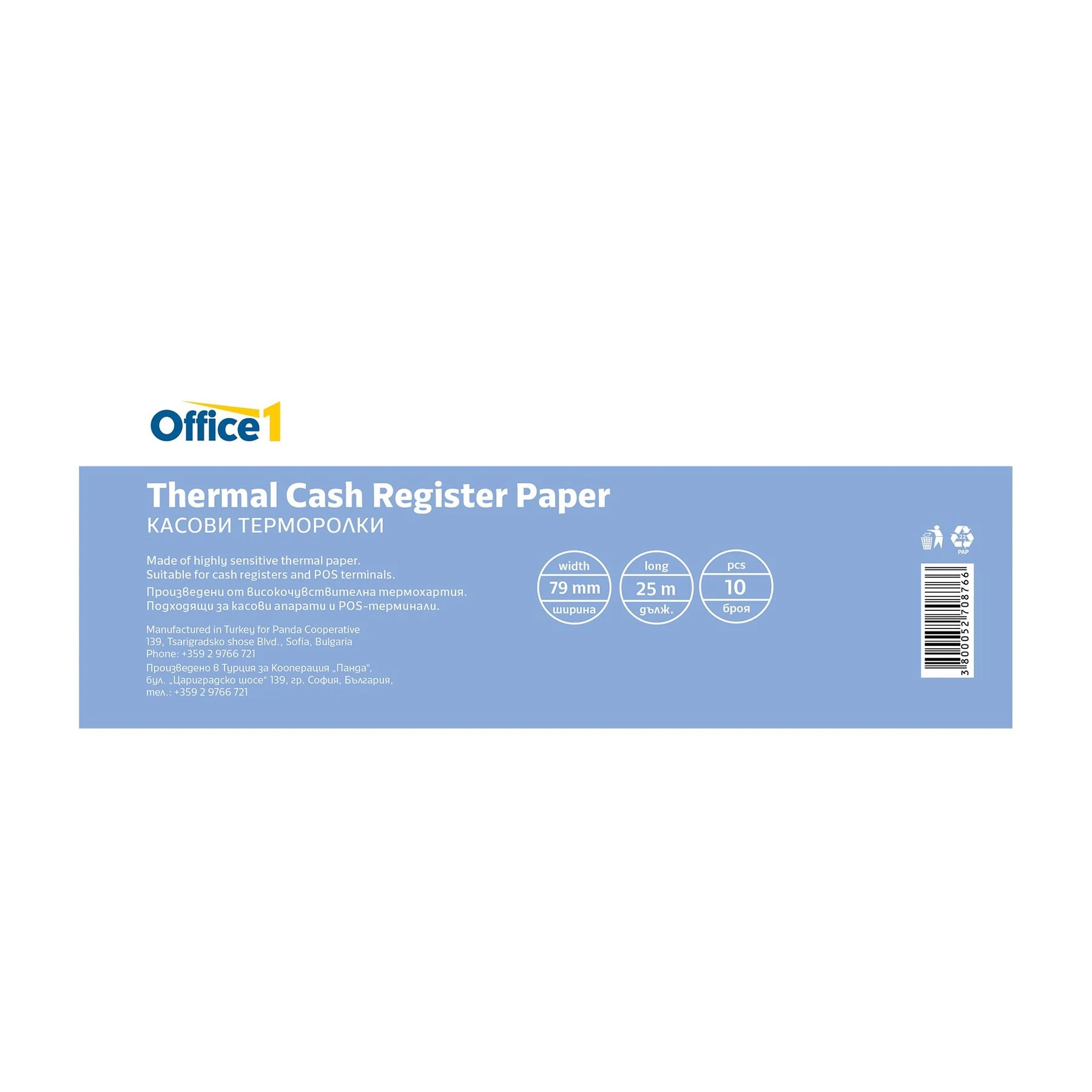 Office 1 Касова ролка, термо, 79 mm x 25 m, 10 броя