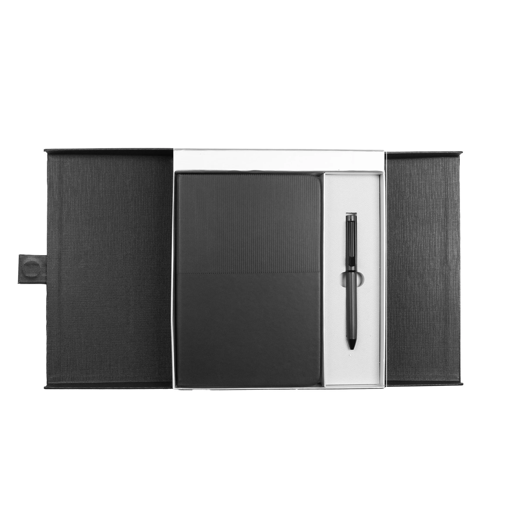 Подаръчен комплект, включващ тефтер и химикалка в елегантна кутия.
