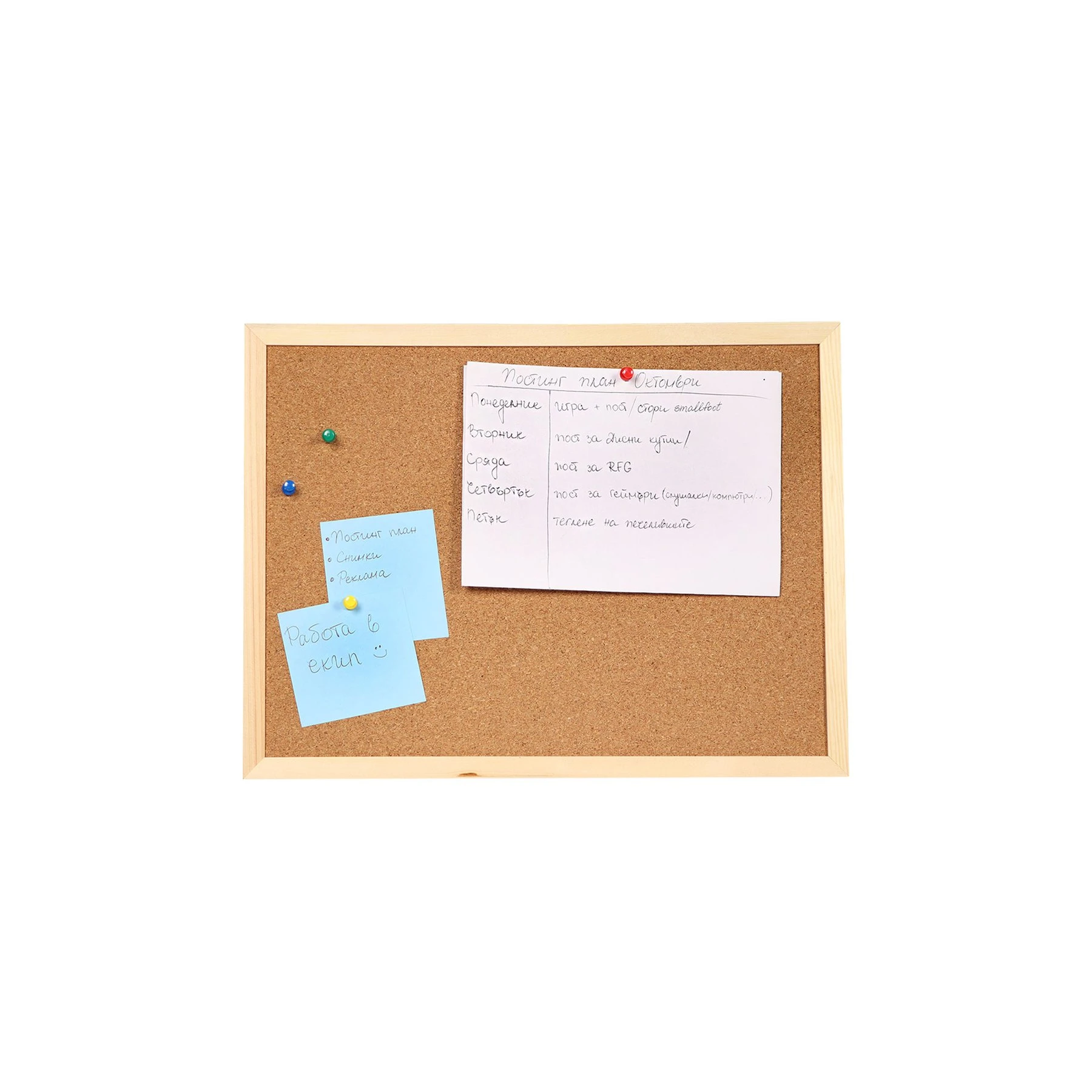 Коркова дъска, подходяща за използване с пинчета, за оставяне на бележки и съобщения. Изработена от висококачествен естествен корк. Идеална за офиса и дома.