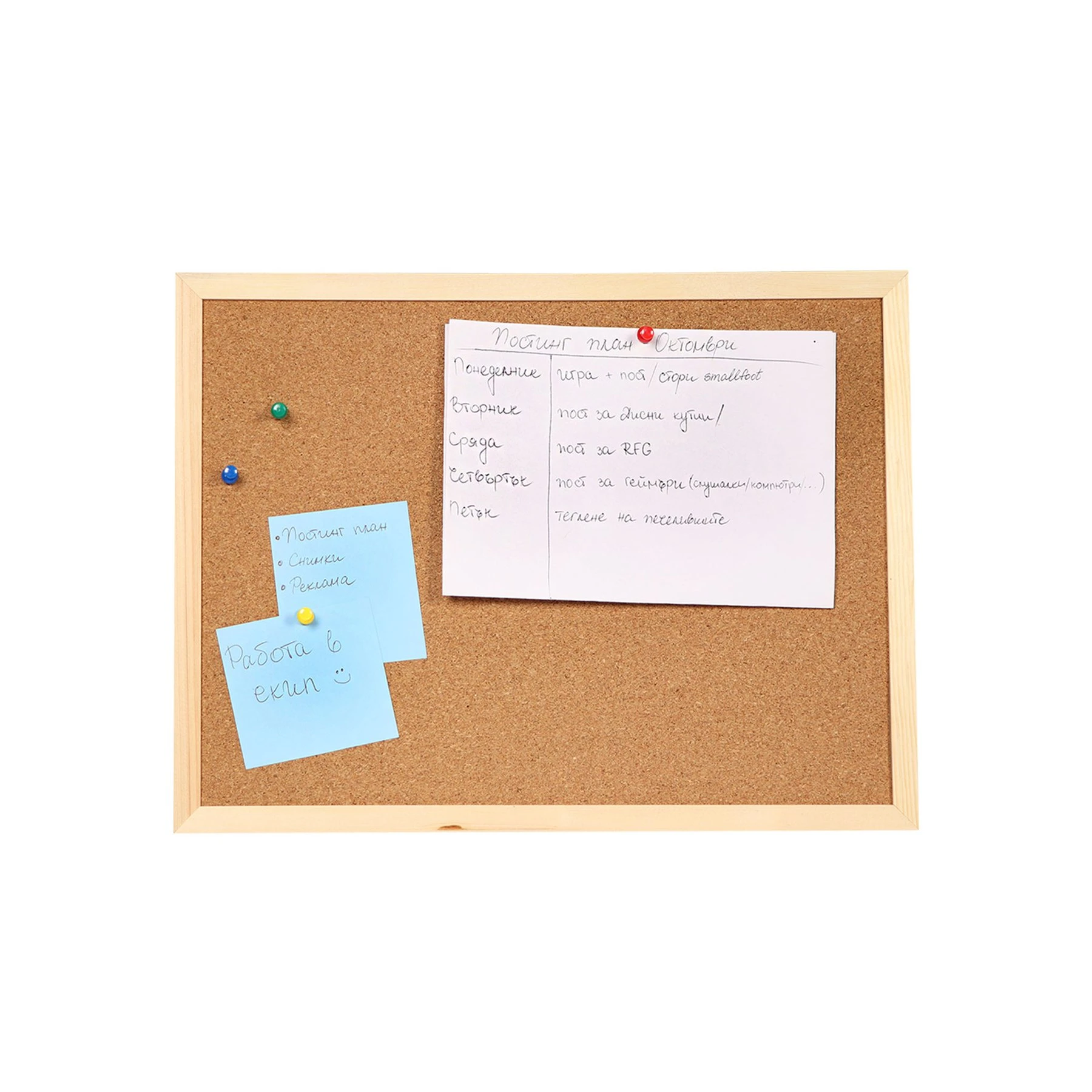 Коркова дъска, подходяща за използване с пинчета, за оставяне на бележки и съобщения. Изработена от висококачествен естествен корк. Идеална за офиса и дома.
