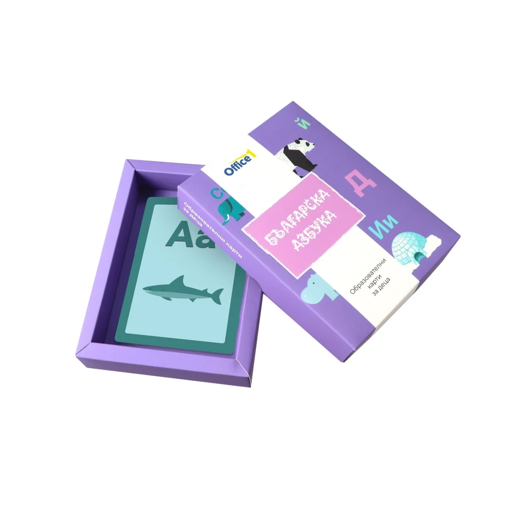 30 карти с българската азбука, в комплект с удобна кутия за съхранение.