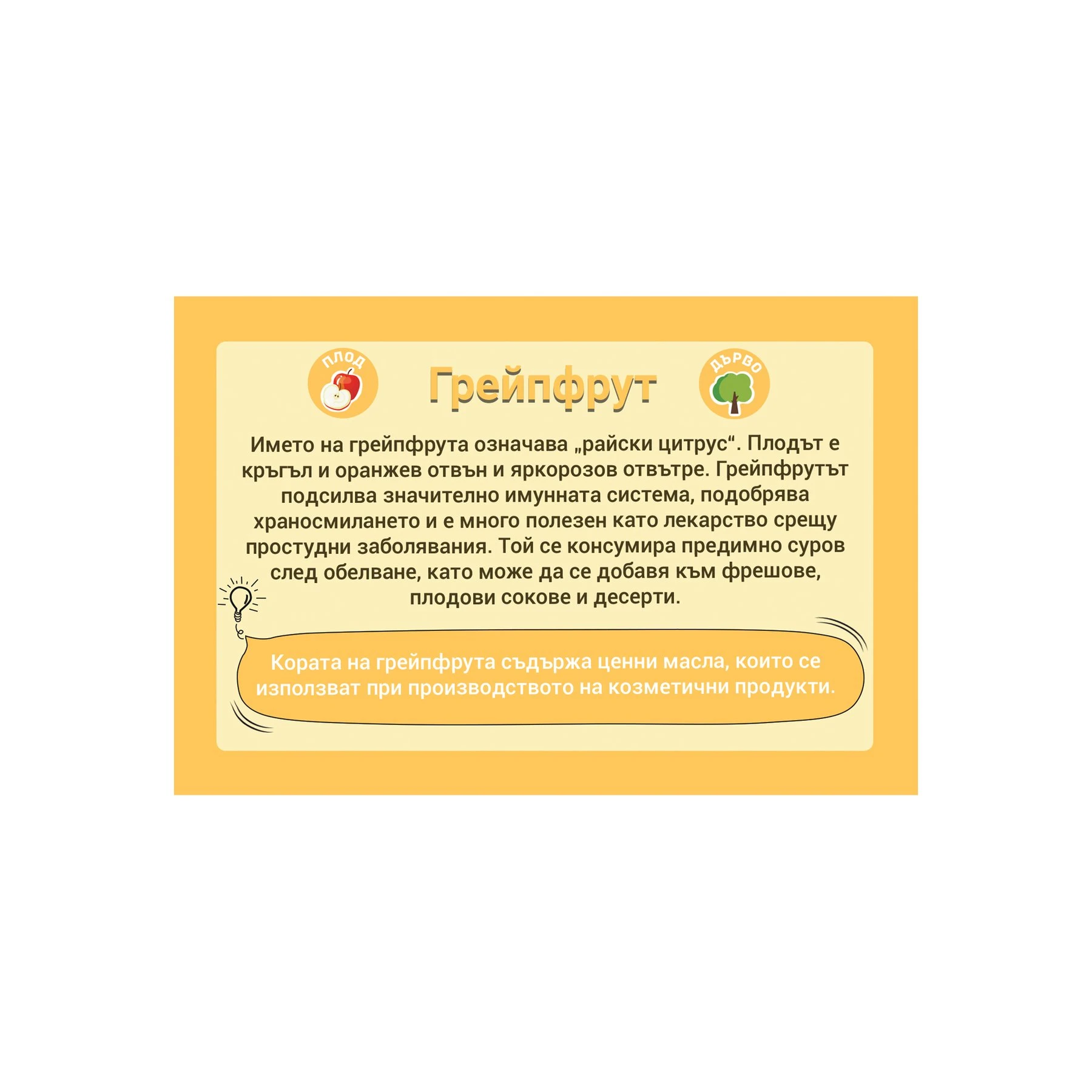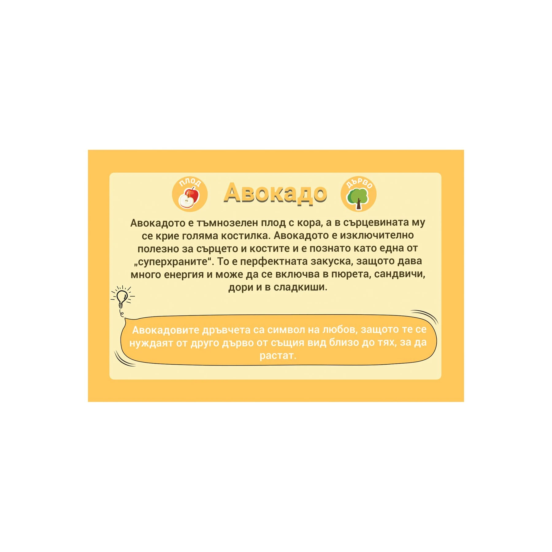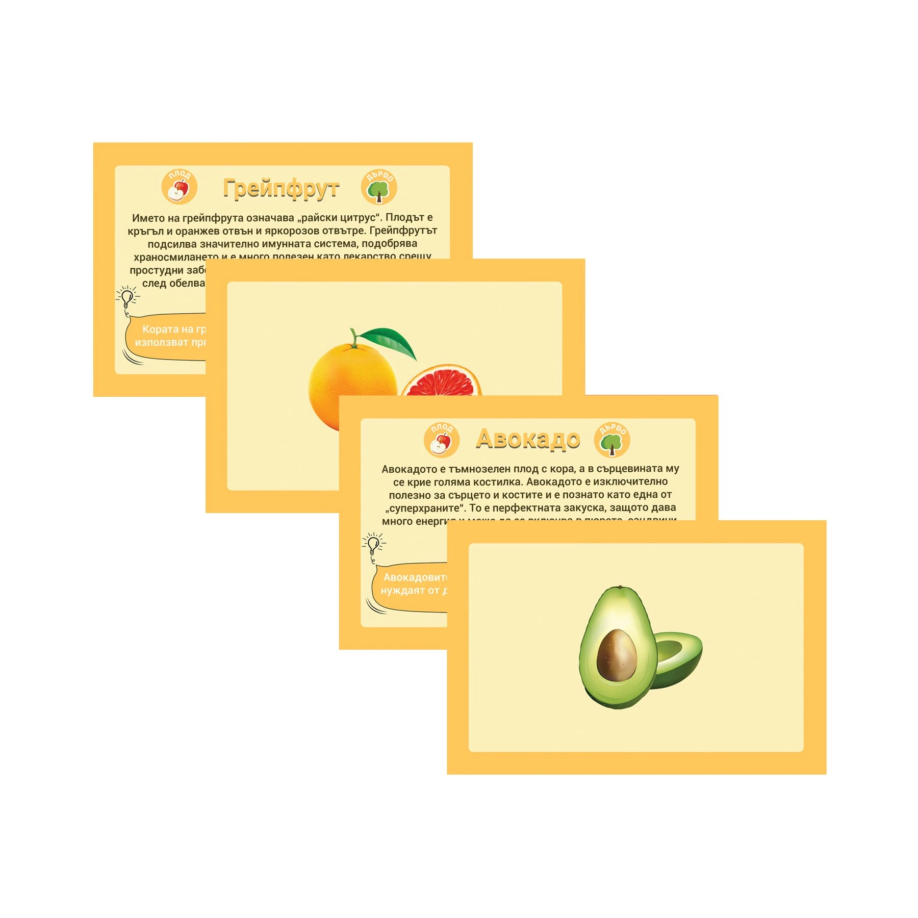 Картите помагат на децата да опознаят плодовете и зеленчуците и да научат интересни факти за тях.