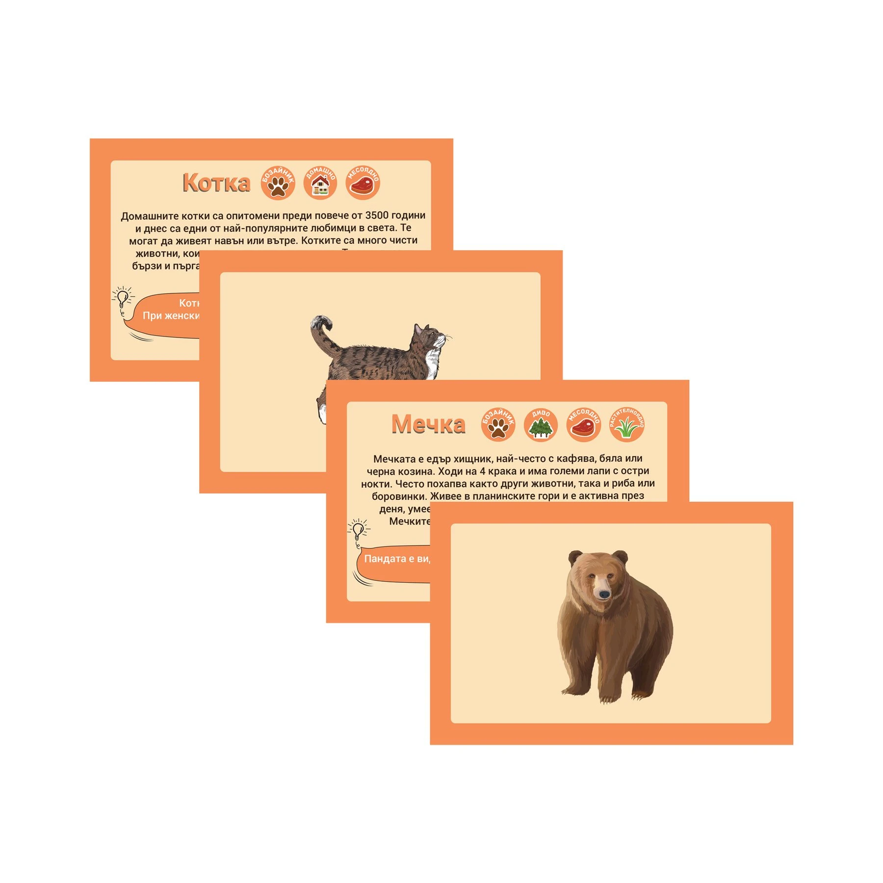 Картите помагат на децата да опознаят животните и да научат интересни факти за тях.