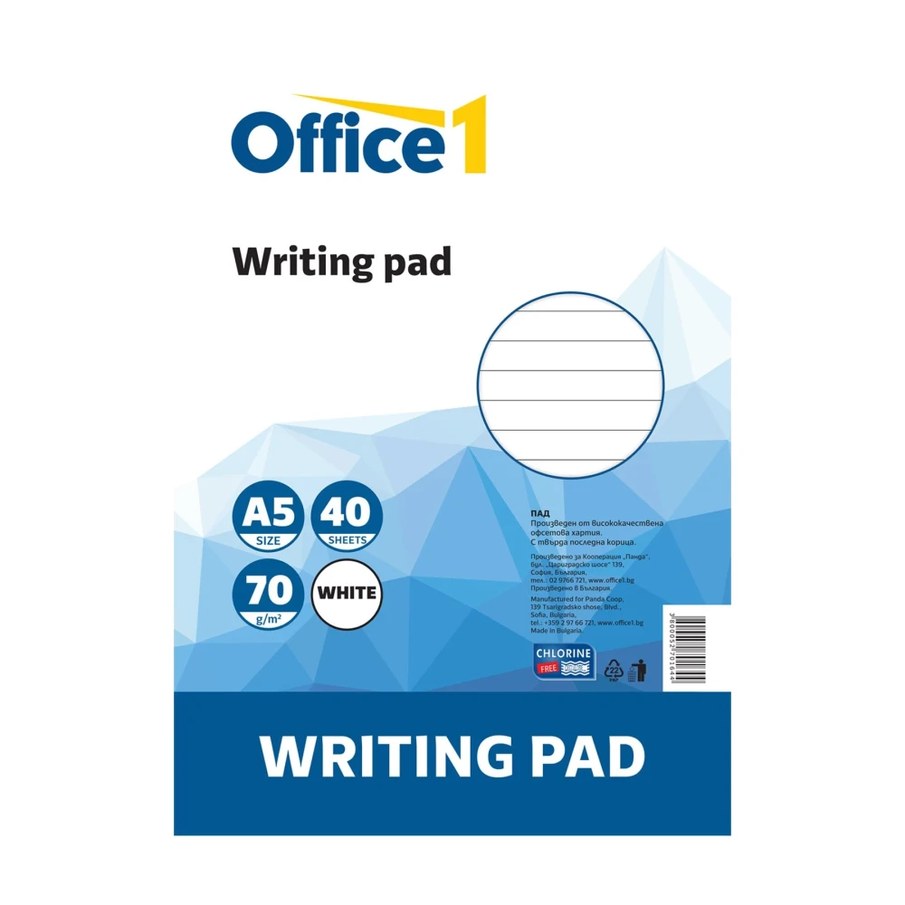 Office 1 Пад, A5, широки редове, бели листове, мека корица, 40 листа
