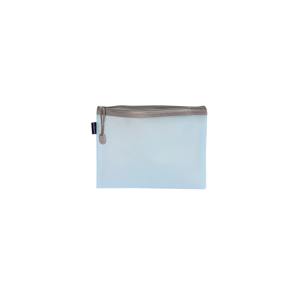 Небесносиня папка с цип – съхранява надеждно вашите документи, пишещи средства и най-необходими аксесоари от ежедневието.