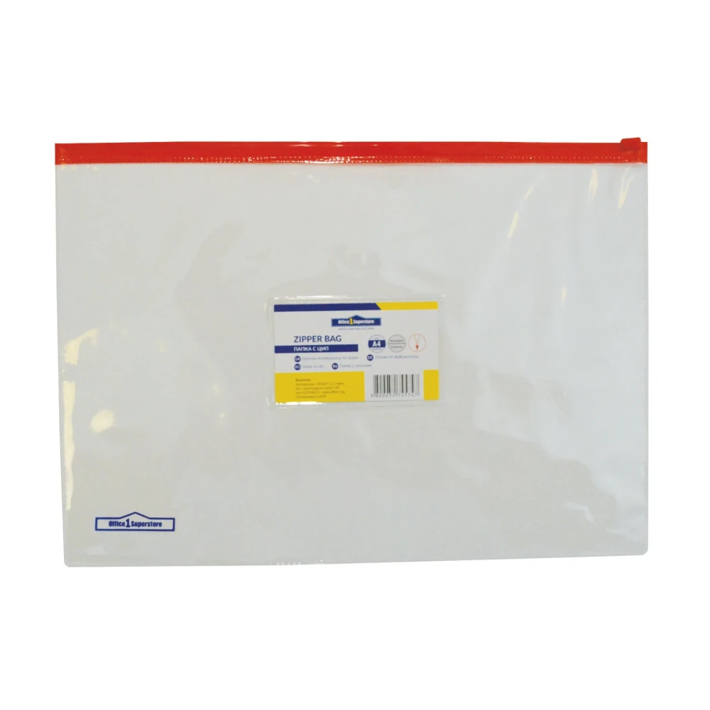 Office 1 Папка с червен цип и джоб за визитка, А4, прозрачна
