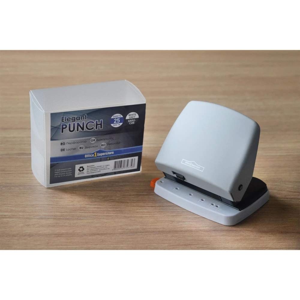 Оffice 1 Перфоратор Elegant, за 25 листа, бялo-сив