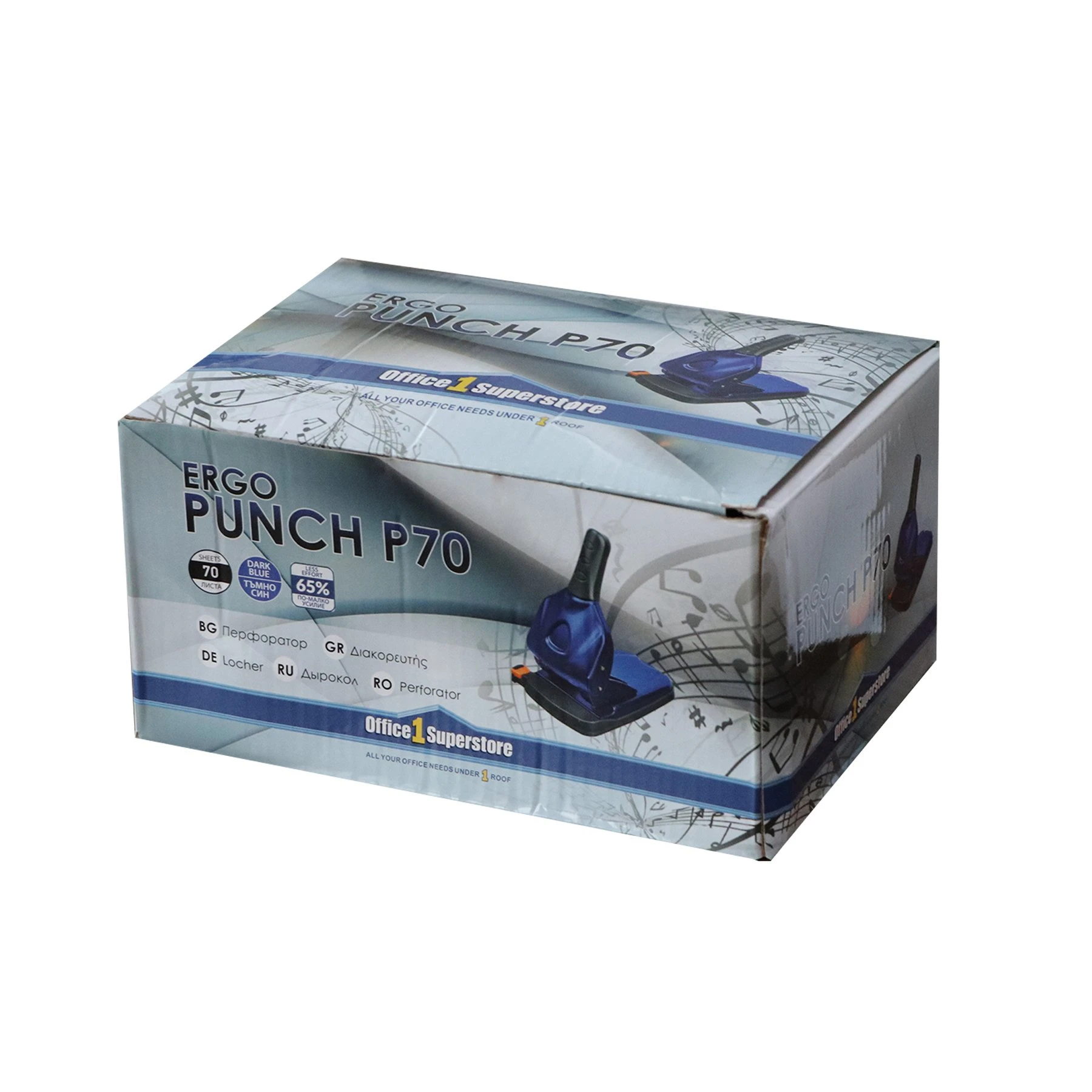Office 1 Перфоратор с ограничител P70, за 70 листа, тъмносин