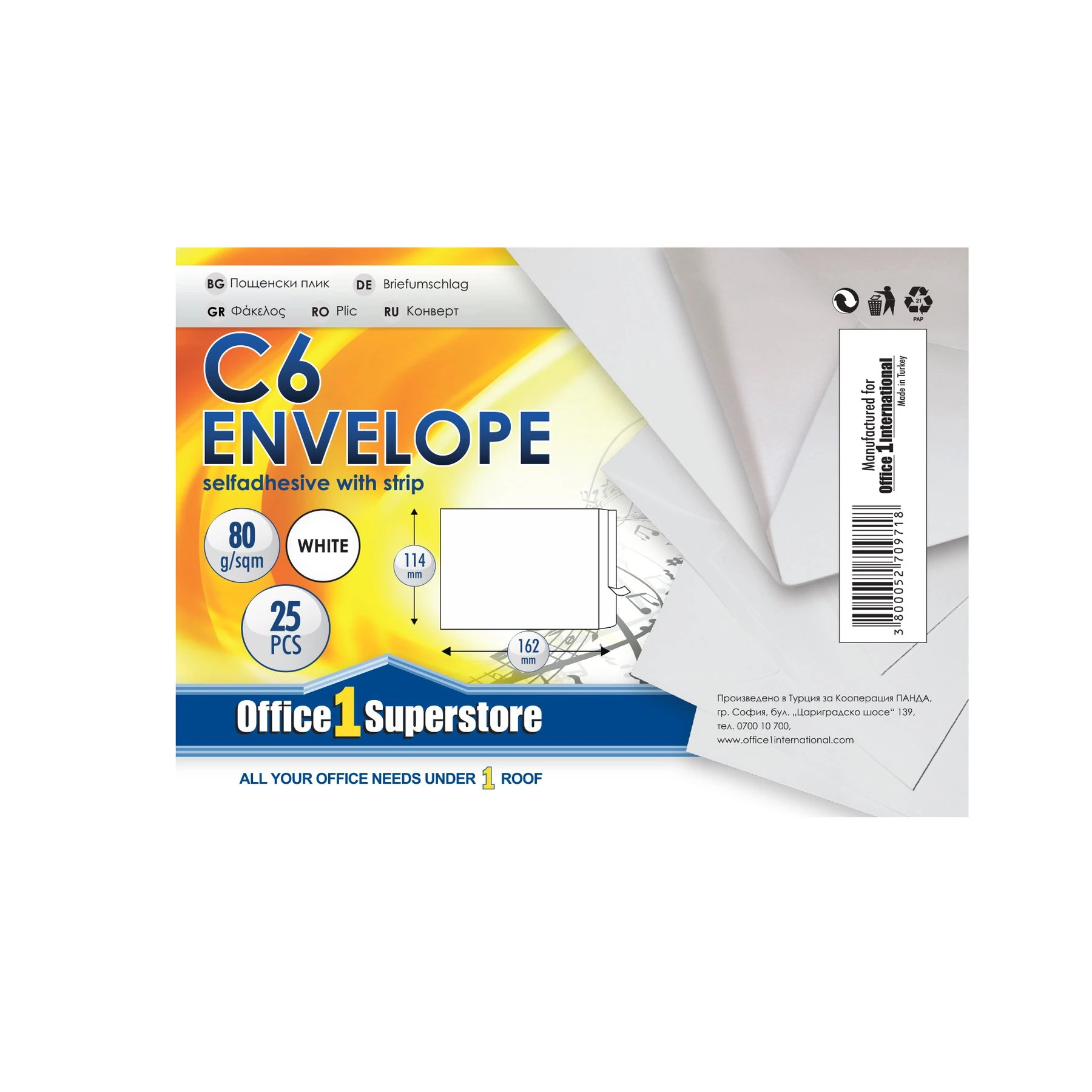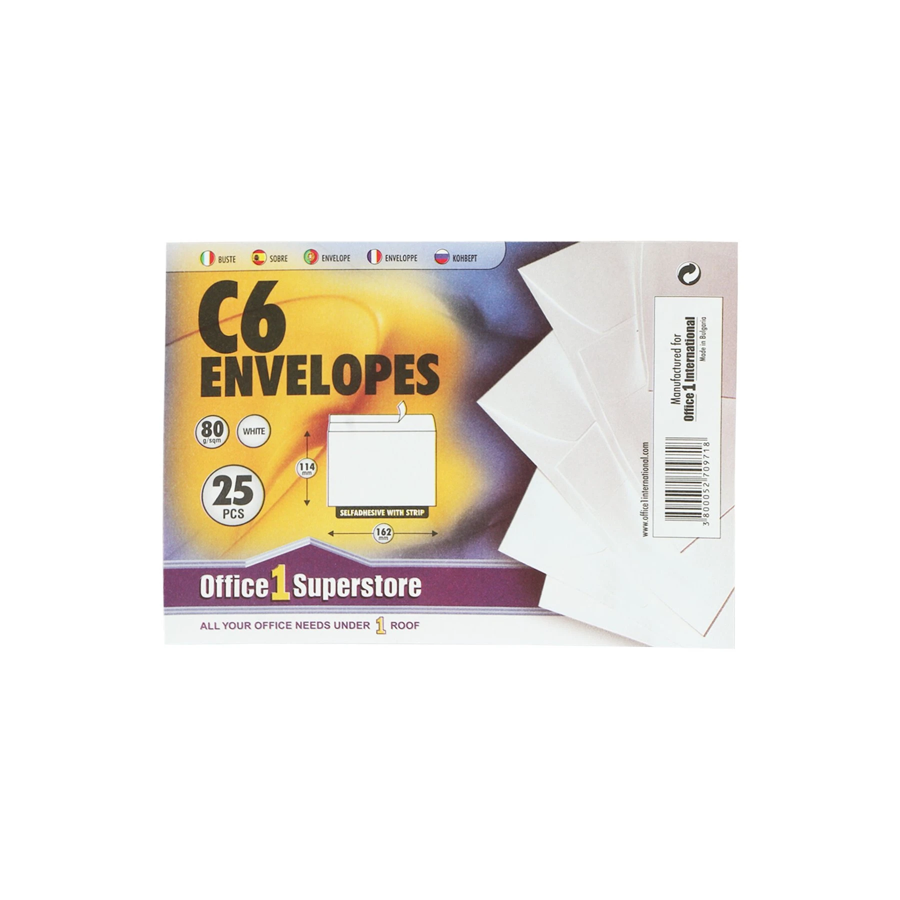Office 1 Плик, C6, 114 x 162 mm, хартиен, със самозалепваща лента, бял, 25 броя