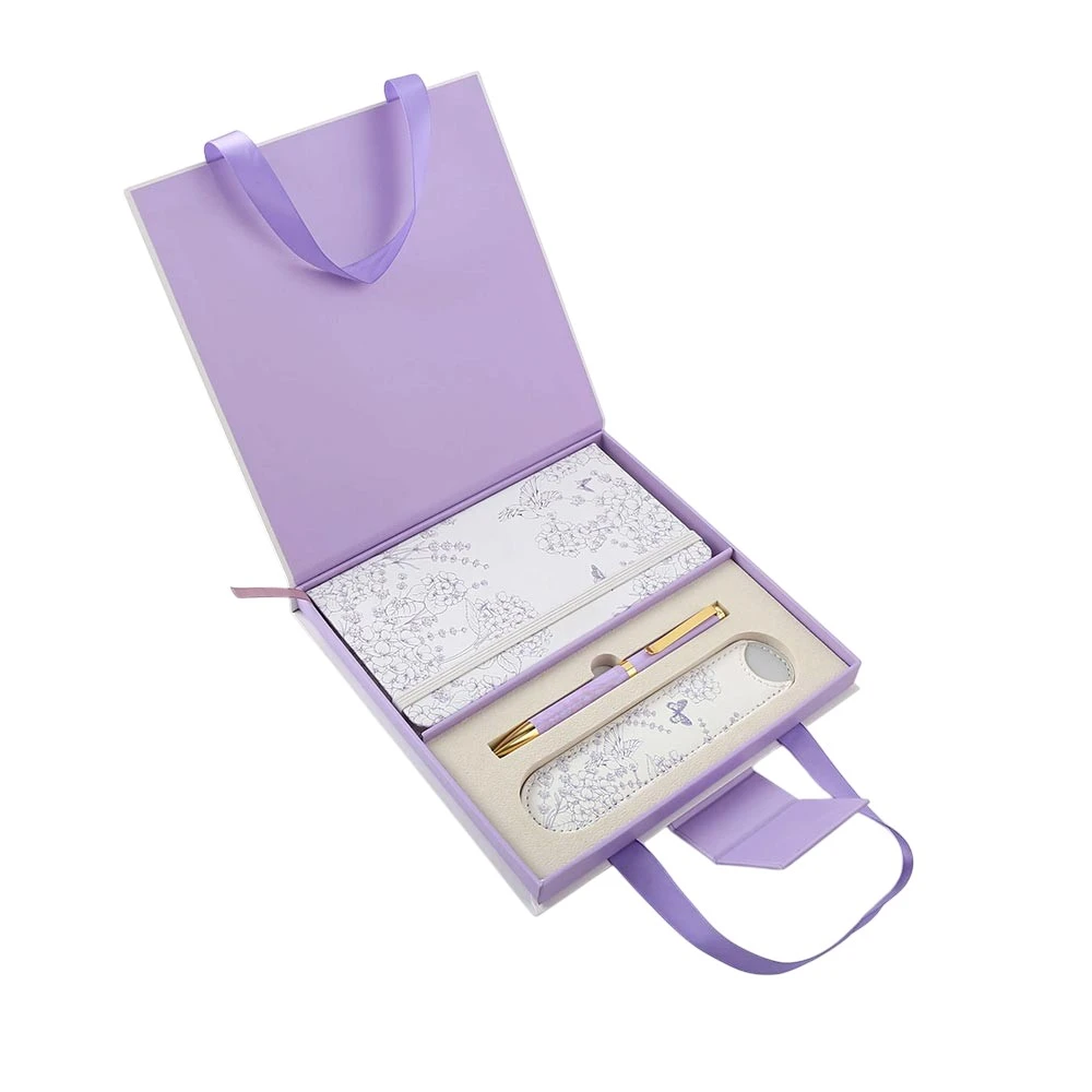 Office 1 Подаръчен комплект Pretty, 3 в 1, тефтер А6, химикалка и калъф, в кутия, лилав