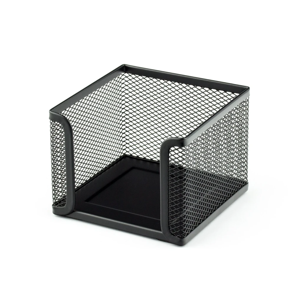 Поставка за хартиени кубчета, изработена от метална мрежа.