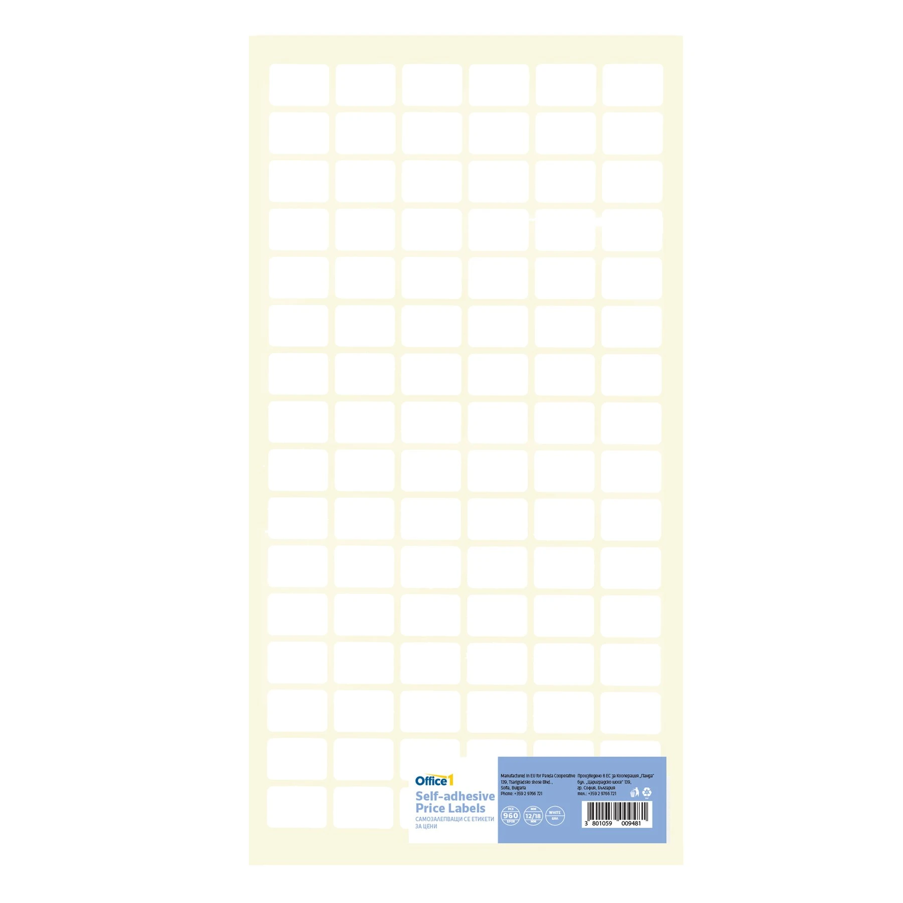 Office 1 Самозалепващи се етикети за цени, 12 x 18 mm, бели, 960 броя
