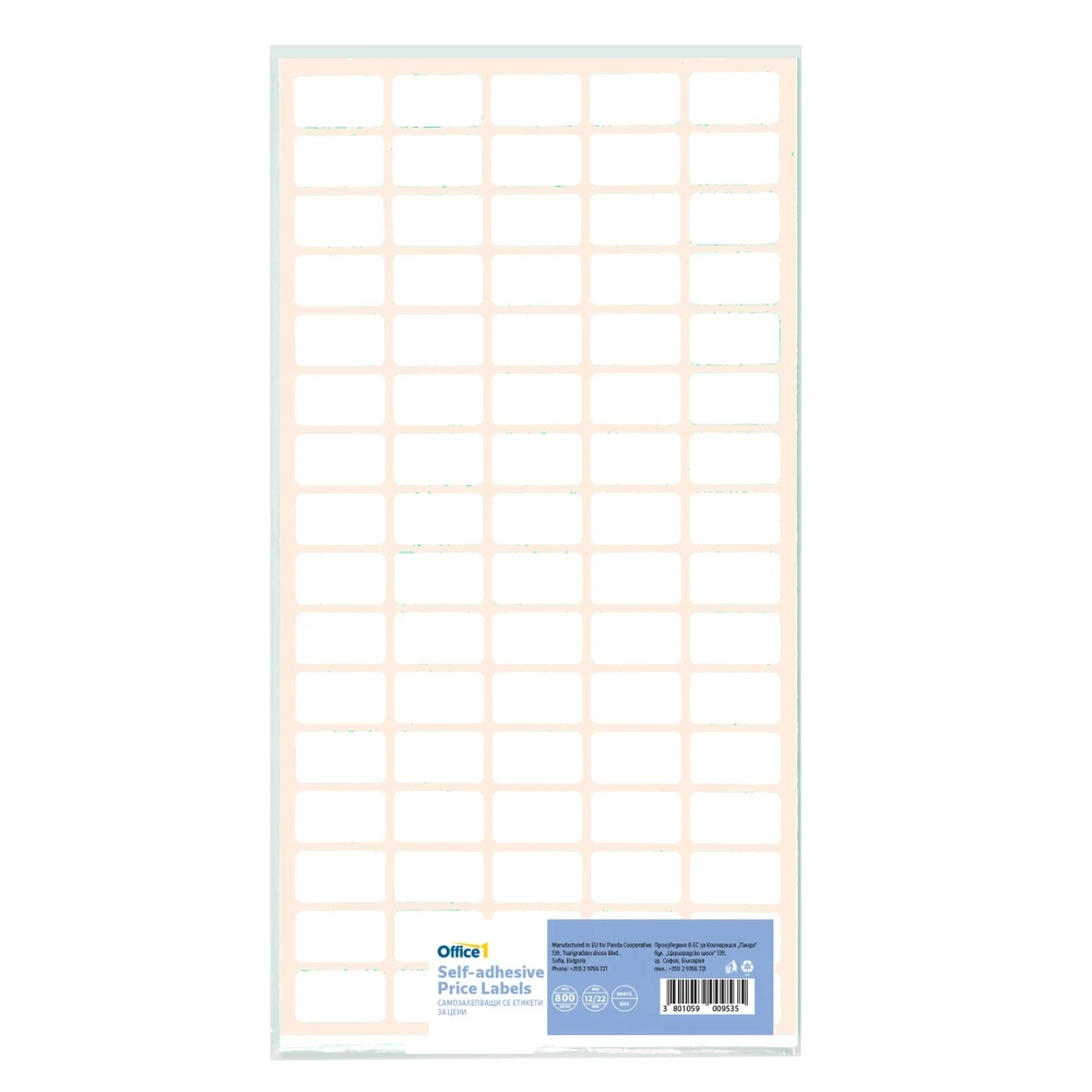 Office 1 Самозалепващи се етикети за цени, 12 x 22 mm, бели, 800 броя