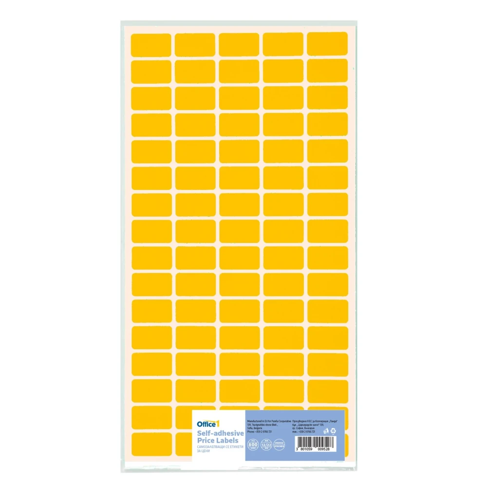 Office 1 Самозалепващи се етикети за цени, 12 x 22 mm, оранжеви, 800 броя