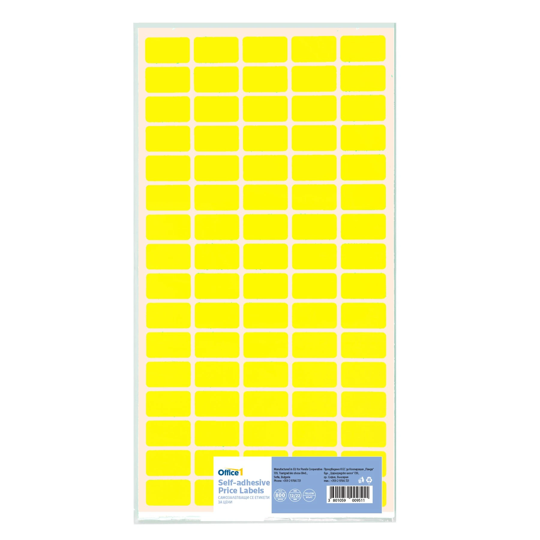 Office 1 Самозалепващи се етикети за цени, 12 x 22 mm, жълти, 800 броя