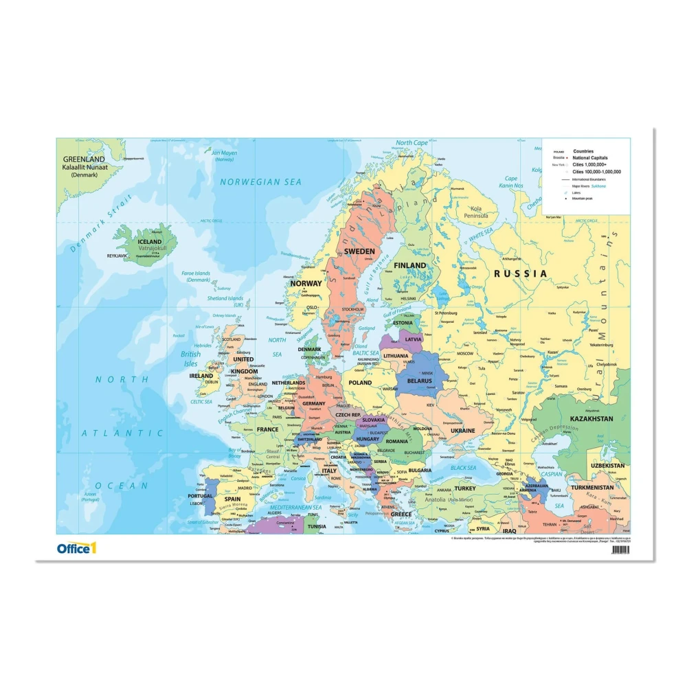 Office 1 Стенна карта на Европа, политическа, 100 x 70 cm