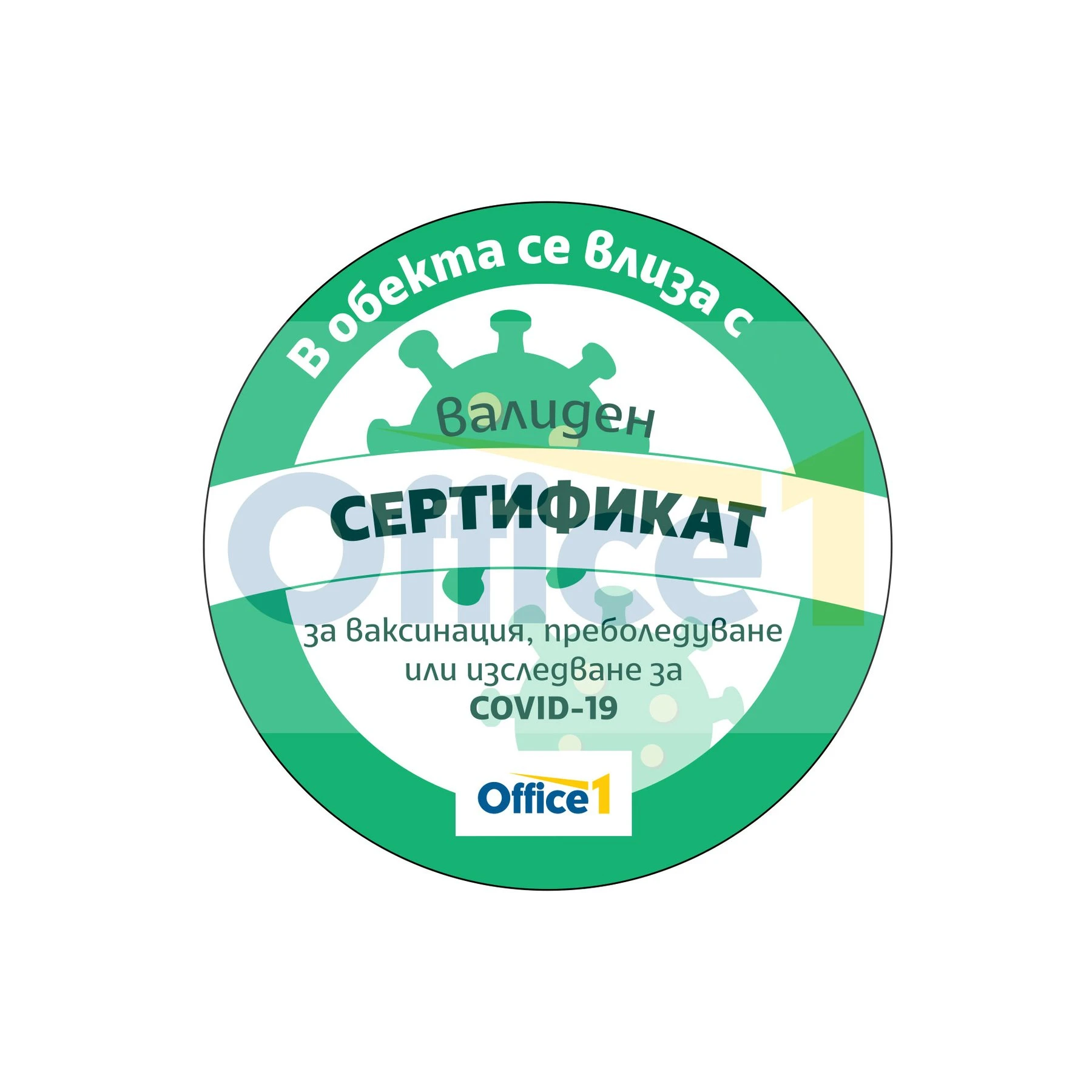 Office 1 Стикер ''Зелен сертификат'', кръг, ø 30 cm, вариант 1