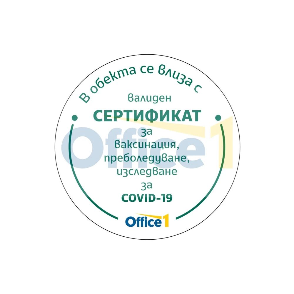 Office 1 Стикер ''Зелен сертификат'', кръг, ø 30 cm, вариант 2