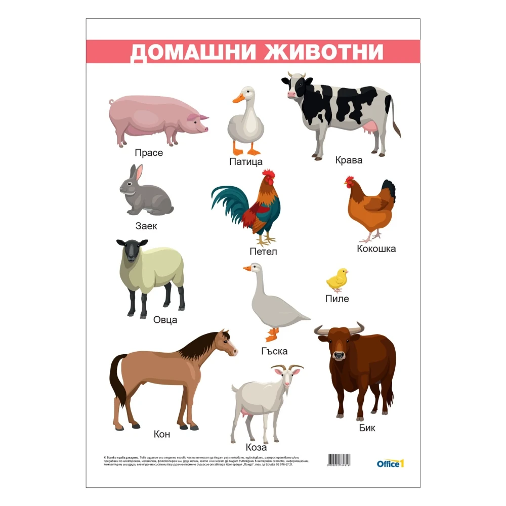 Office 1 Ученическо табло ''Домашни животни'', ламинирано, 50 x 70 cm, модел 1