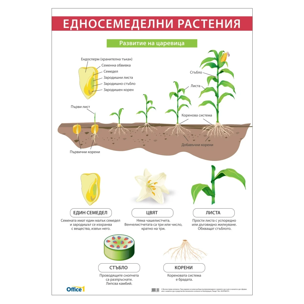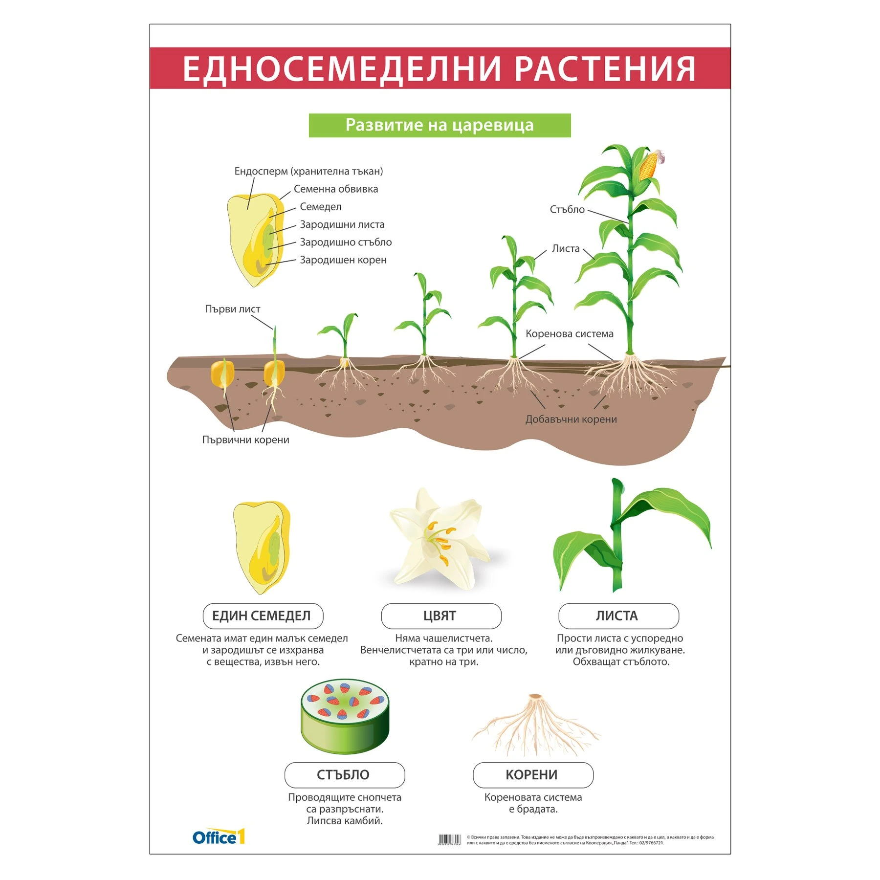 Office 1 Ученическо табло ''Едносемеделни растения'', 70 x 100 cm