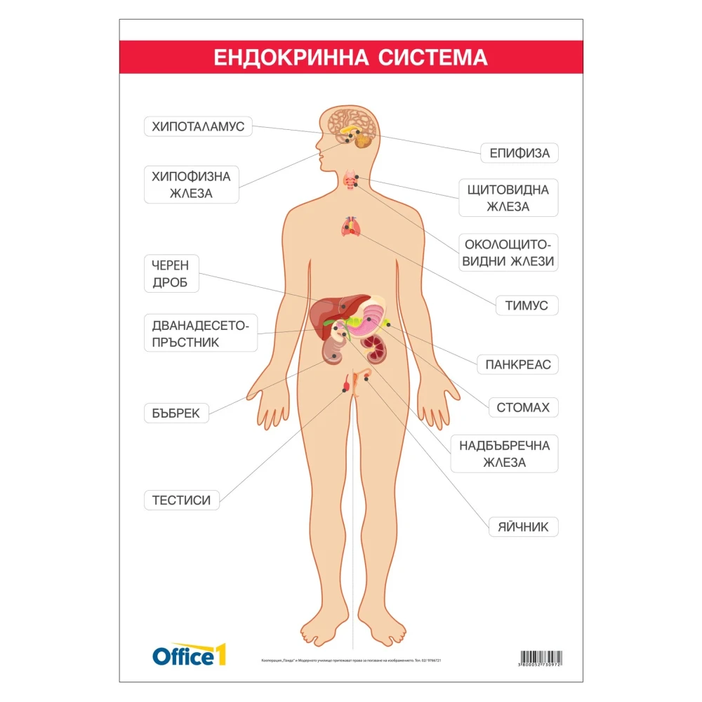 Office 1 Ученическо табло ''Ендокринна система'', 70 x 100 cm
