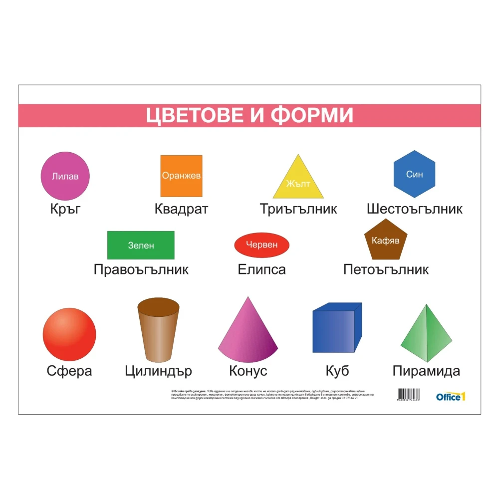 Office 1 Ученическо табло ''Форми и цветове'', ламинирано, 50 x 70 cm