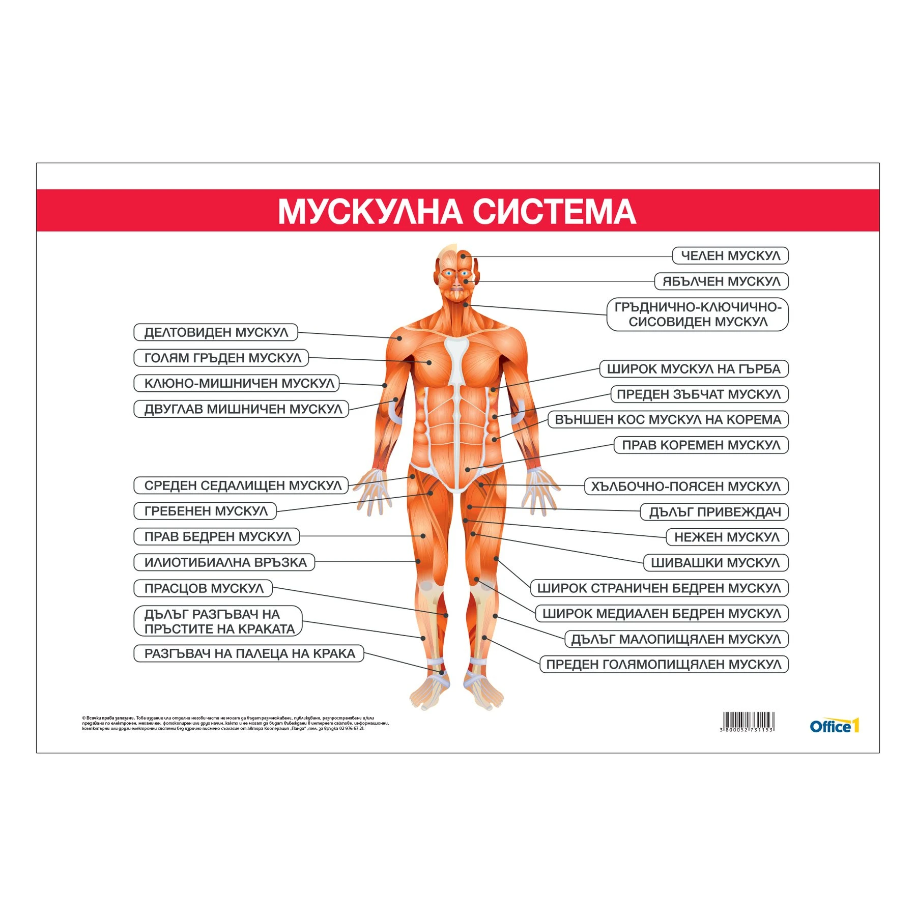 Office 1 Ученическо табло ''Мускулна система'', 100 x 70 cm