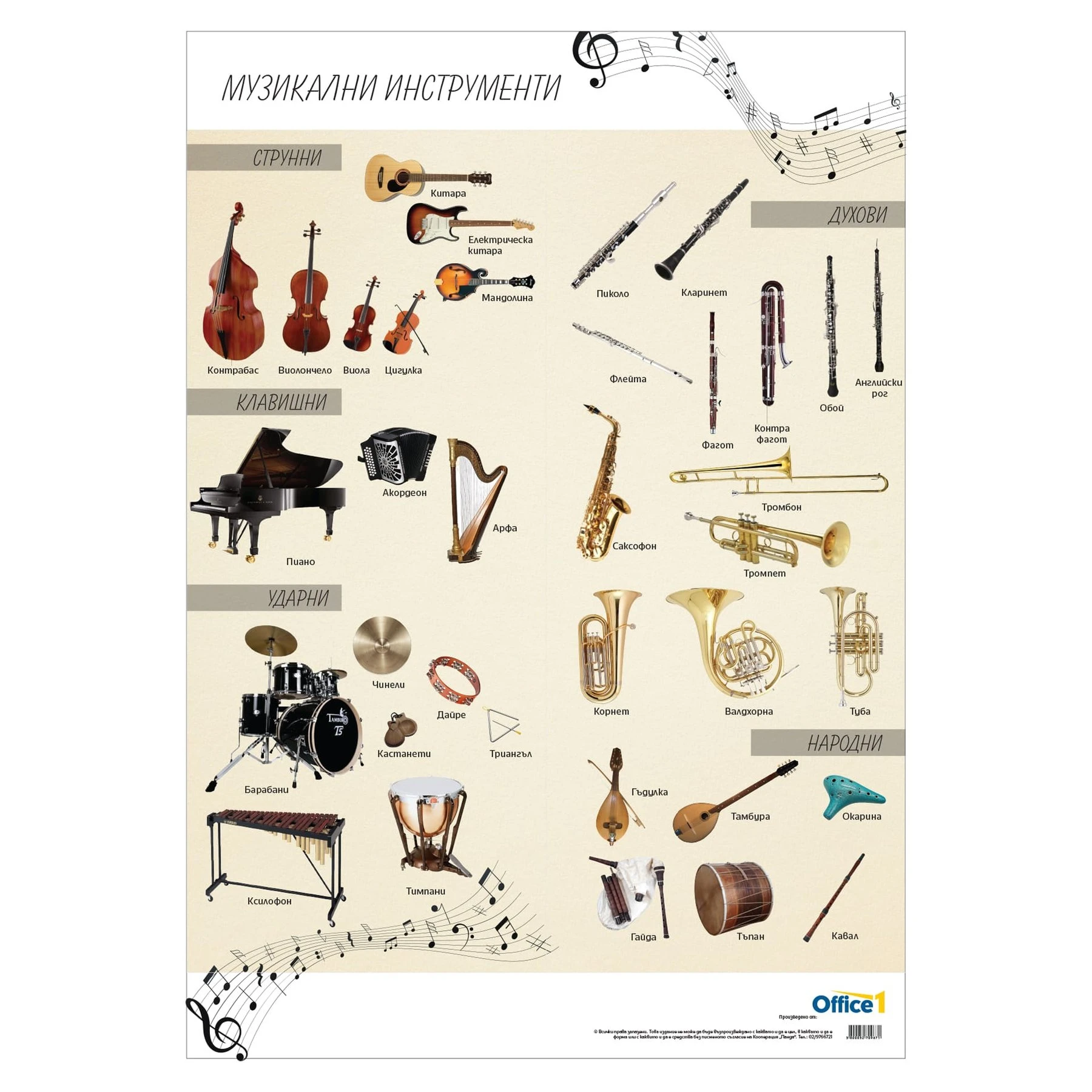 Office 1 Ученическо табло ''Музикални инструменти'', 70 x 100 cm