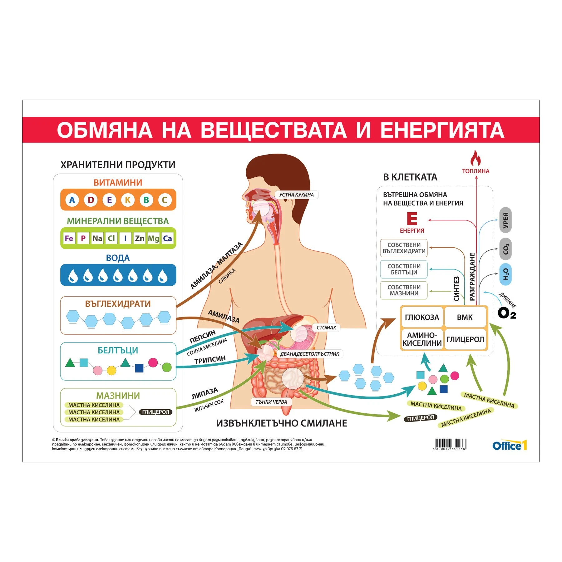 Office 1 Ученическо табло ''Обмяна на вещества и енергия'', 100 x 70 cm