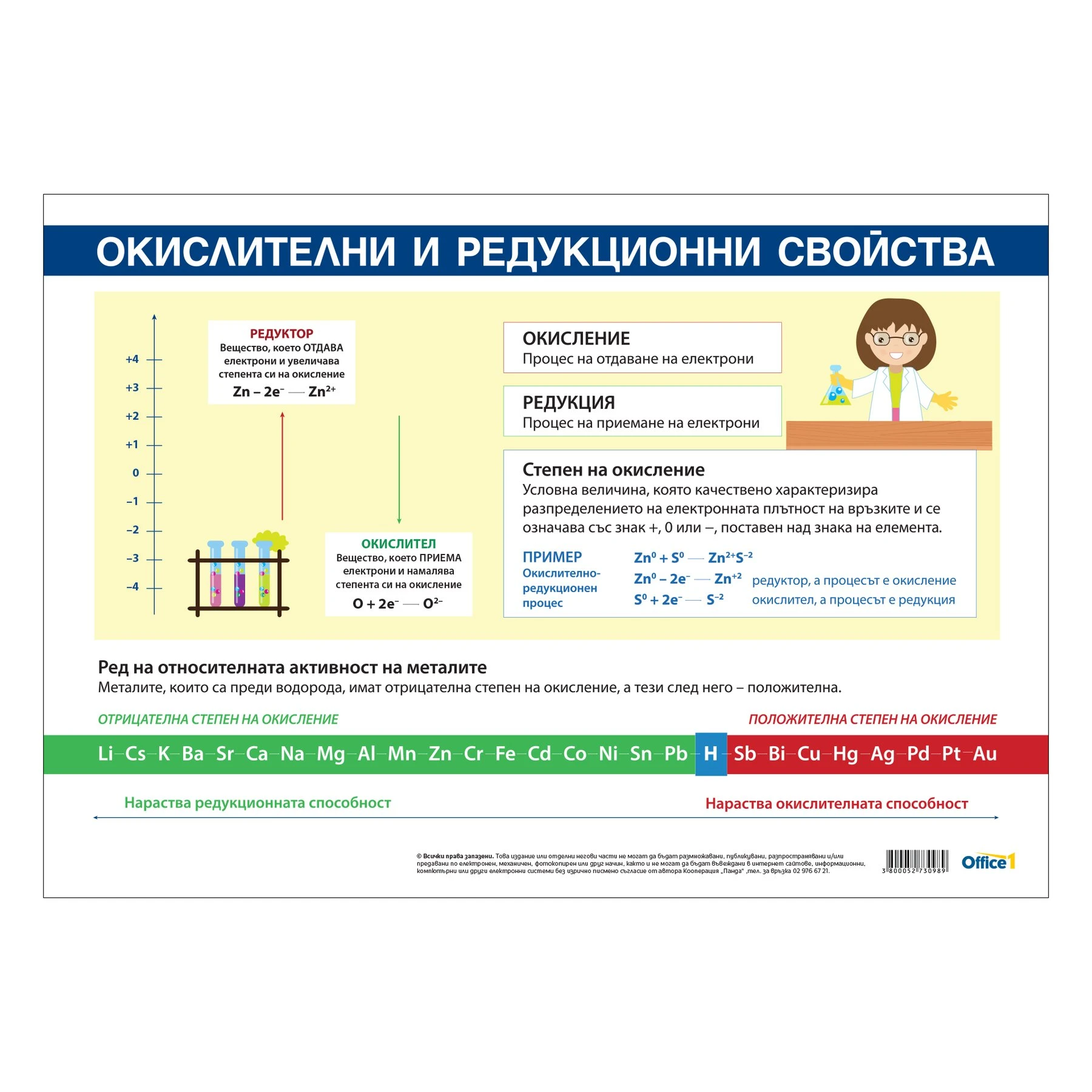 Office 1 Ученическо табло ''Окислителни и редукционни свойства'', 100 x 70 cm