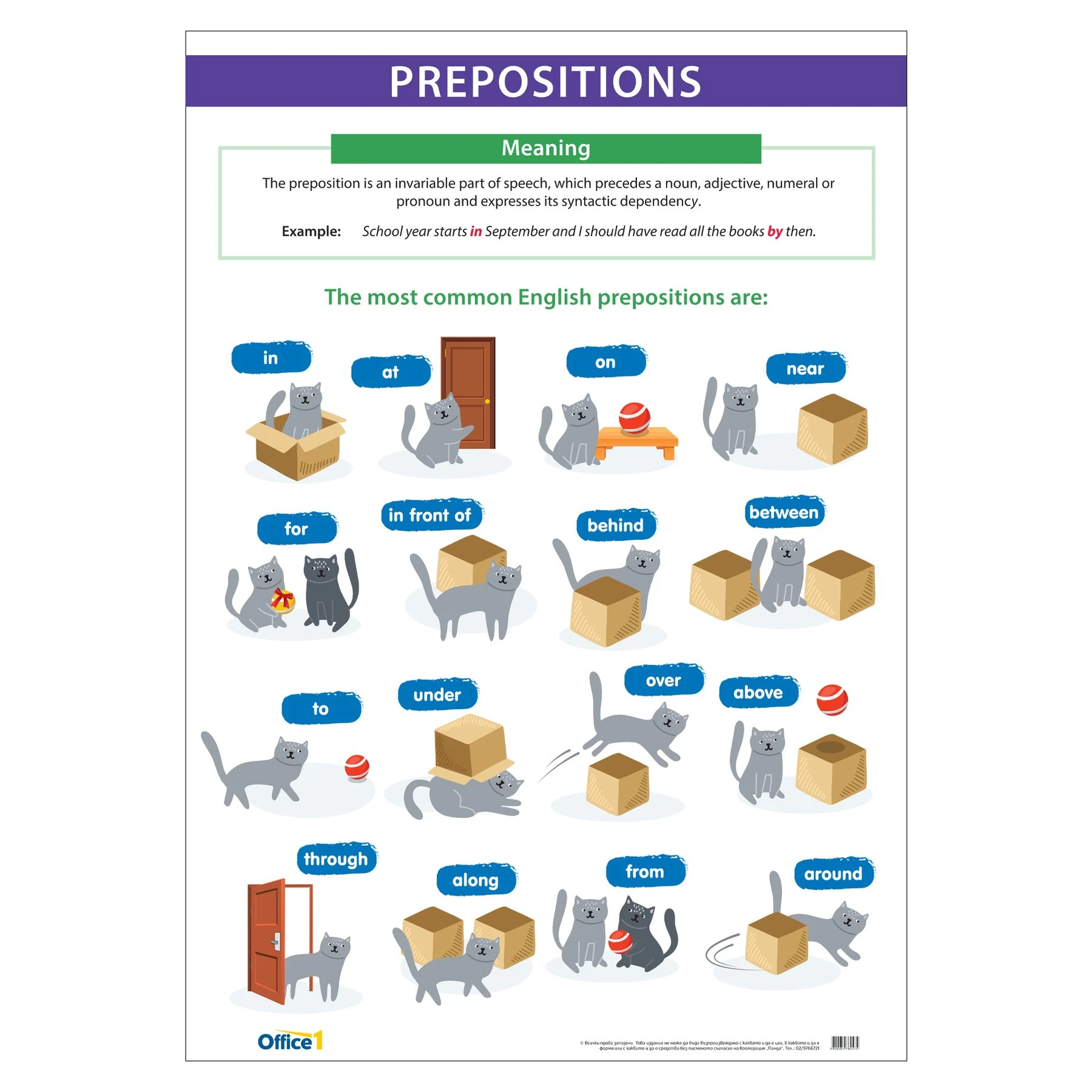 Office 1 Ученическо табло ''Предлози в английския език'', 70 x 100 cm