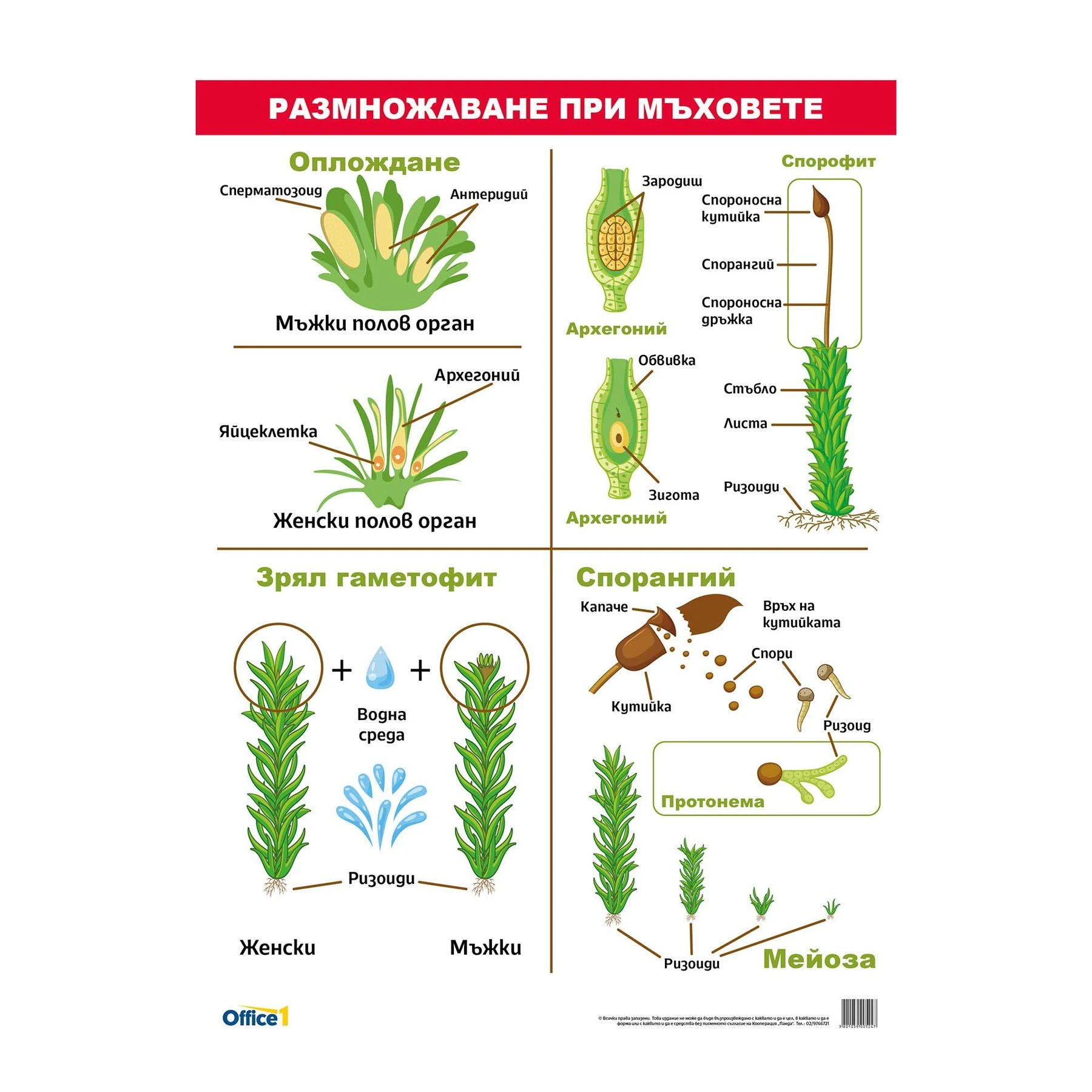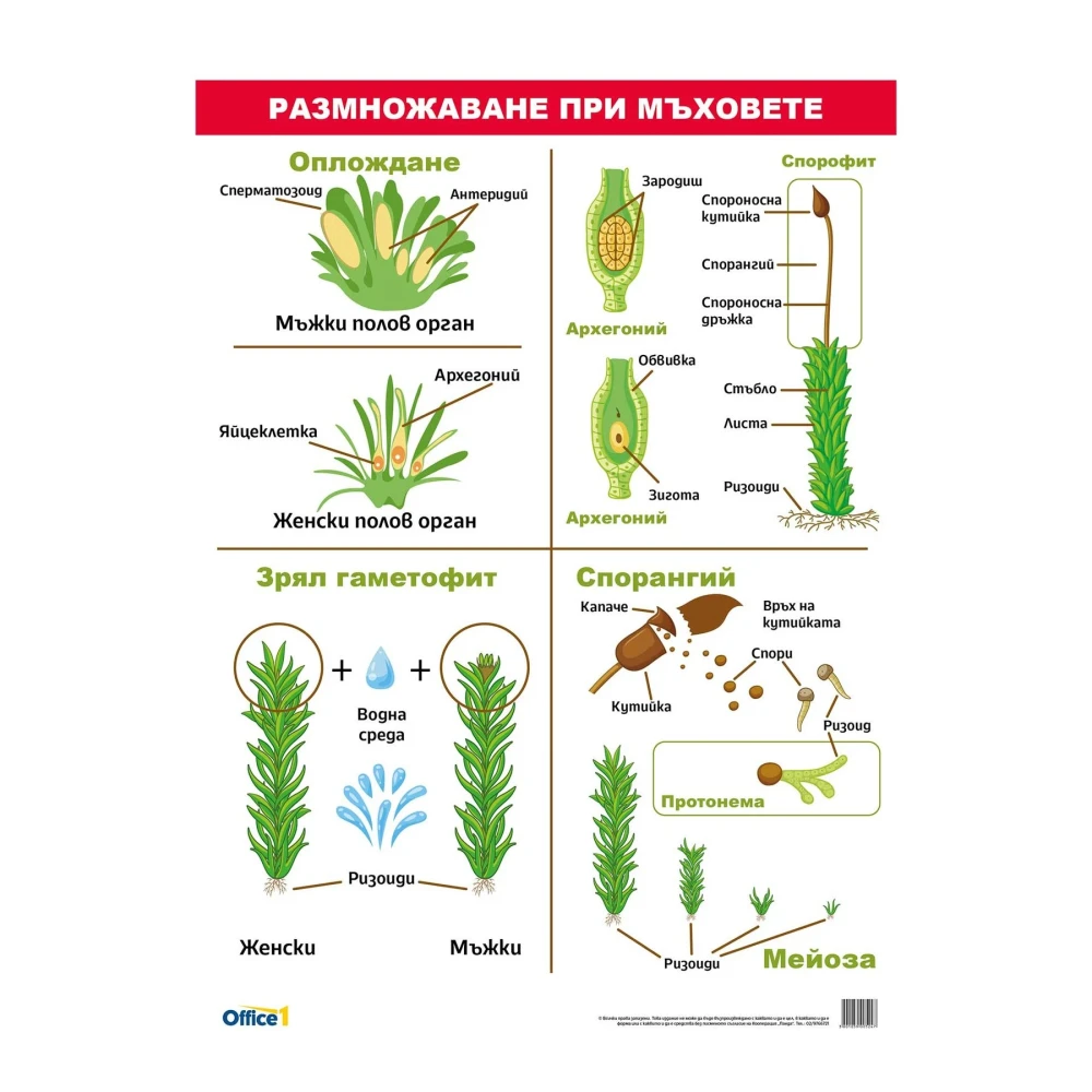 Office 1 Ученическо табло ''Размножаване при мъховете'', 70 x 100 cm