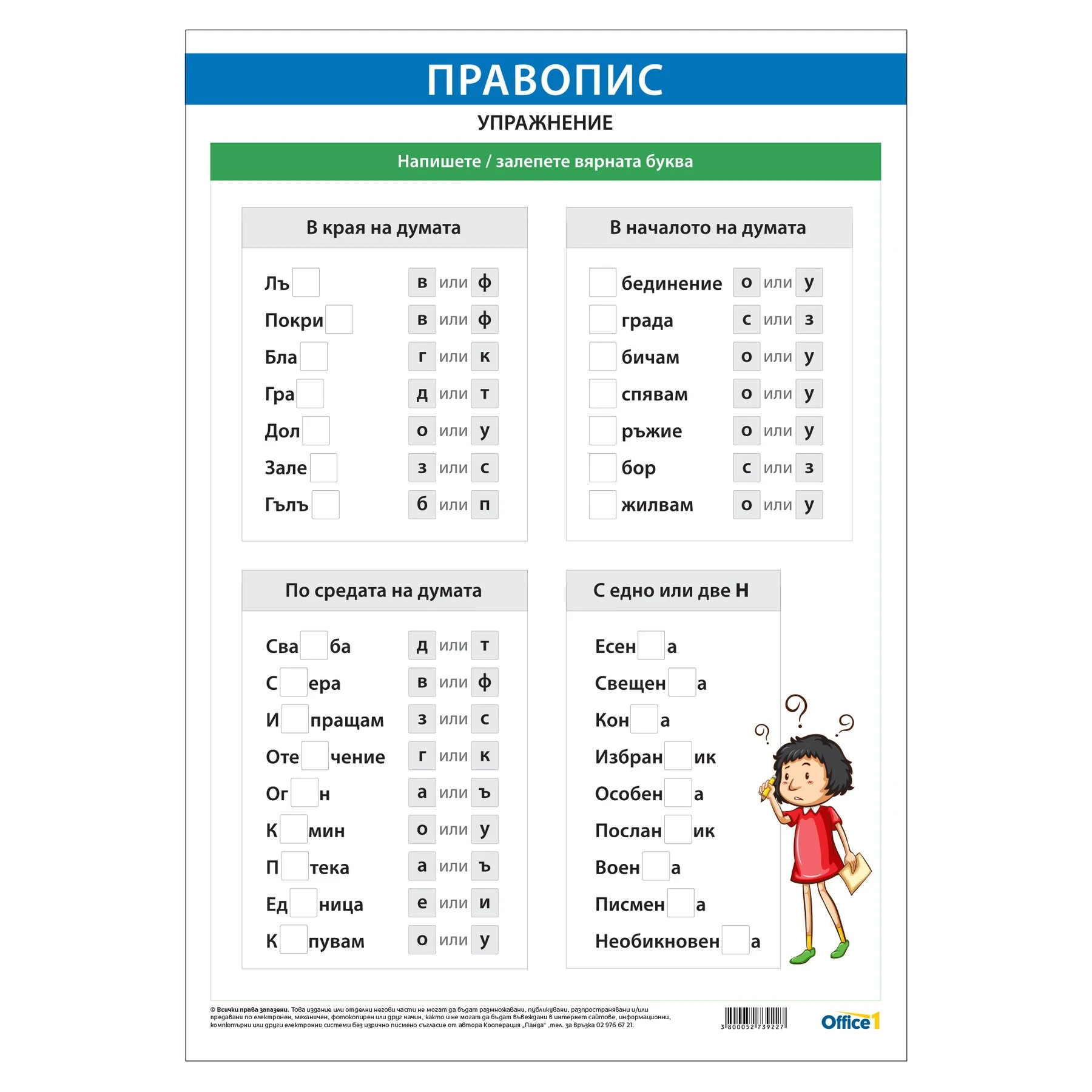 Ламинирано учебно табло ''Упражнения по правопис''.